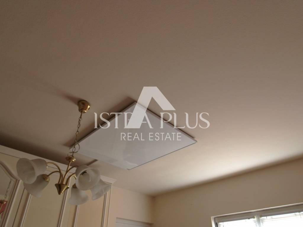 Heating and cooling can be done via an air conditioner, in every room there are BYSUN ceiling panels with a thermostat for electric heating and a wood stove is located in the living room.