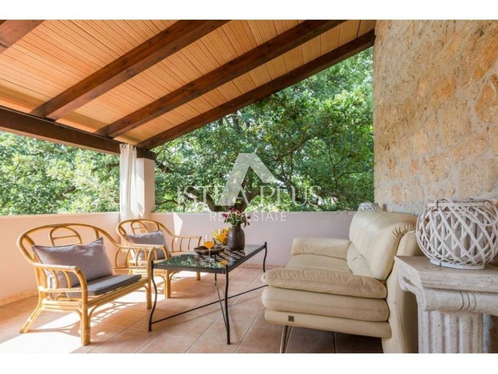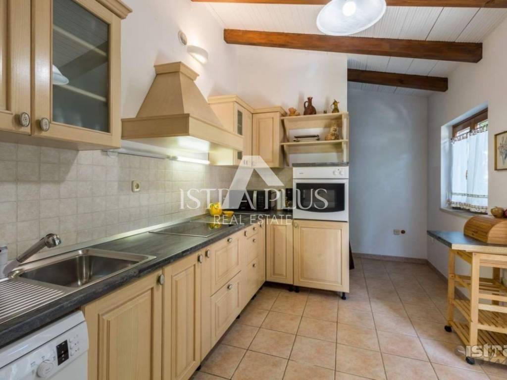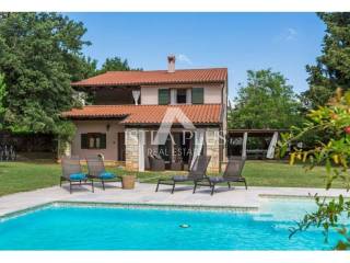 Not far from Poreč and the sea is this detached house with a large garden. The ground floor of the house consists of a hallway, living room with fireplace, bedroom, kitchen with access to a covered terrace and bathroom. On the first floor there are two bedrooms, a bathroom and a large terrace with a view of nature.