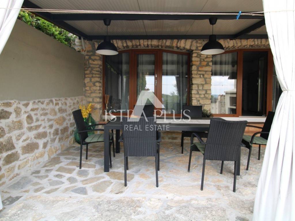 In Vižinada, 12km from Poreč, there is this completely renovated stone house. The house was renovated in 2025 and every detail was taken care of. 150m2 spread over 3 floors. Ground floor with entrance hall, bathroom, kitchen and dining room, large living room with access to a covered terrace and a garden enclosed by a stone wall. A storage room has been built in the yard and since the garden is 221m2 there is a possibility of building a swimming pool. On the first floor there are two bedrooms with access to a spacious covered terrace overlooking the greenery and a bathroom. Another bedroom has been built in the attic of the house. The heating in the house is solved by central heating on pallets, but the house also has air conditioning for heating/cooling. A PROPERTY WORTH SEEING