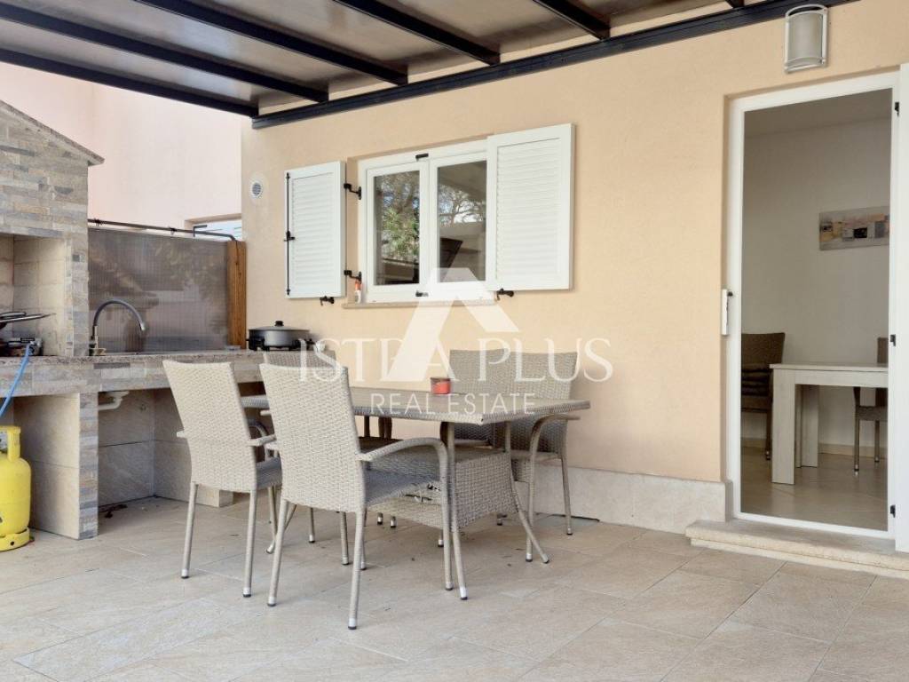K318 A beautiful terraced house is for sale located in a quiet residential area, just a ten-minute walk from the beach. The 103 m house consists of three bedrooms, two bathrooms, a living room connected to the dining room and a fully equipped kitchen. The fenced yard contains garden furniture, an outdoor whirlpool for five people and a barbecue. The property also includes two parking spaces. The house is fully equipped and furnished, including air conditioning installed in all rooms. The location of this house allows easy access to all amenities necessary for life. The shop is only 500 meters away, a restaurant 300 meters away, while the city of Poreč is nine kilometers away. The sea is only 800 meters away, and lovers of active holidays can explore numerous cycling trails, wine roads and cultural attractions in the area. This property represents an excellent opportunity for those looking for a peaceful retreat near the sea, but also for investors who want to secure a stable income from tourist rentals.