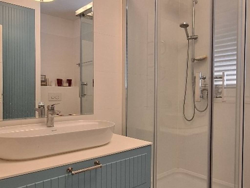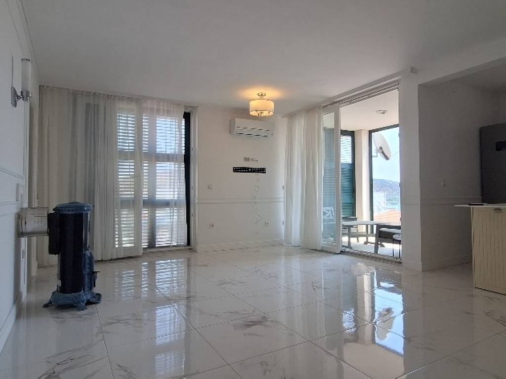 The apartment is in a modern building and, thanks to its elevated position, offers stunning panoramic views of the sea, Ražanj, and Rogoznica.