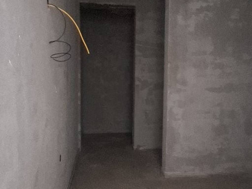 The apartment includes three spacious bedrooms, and all rooms are connected by a hallway leading to a modern bathroom.