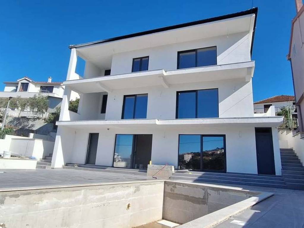 Located directly on the seafront in Ražanj (Rogoznica), this luxurious 248m house features three bedrooms, three bathrooms, a pool, and private parking perfect as an exclusive villa or rental investment This luxury house with a pool, located in an extraordinary location, just a few steps from the sea, is a true masterpiece of modern design and supreme comfort.