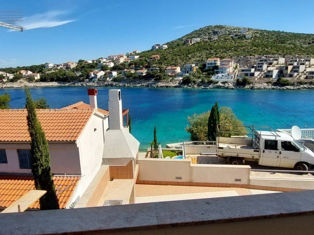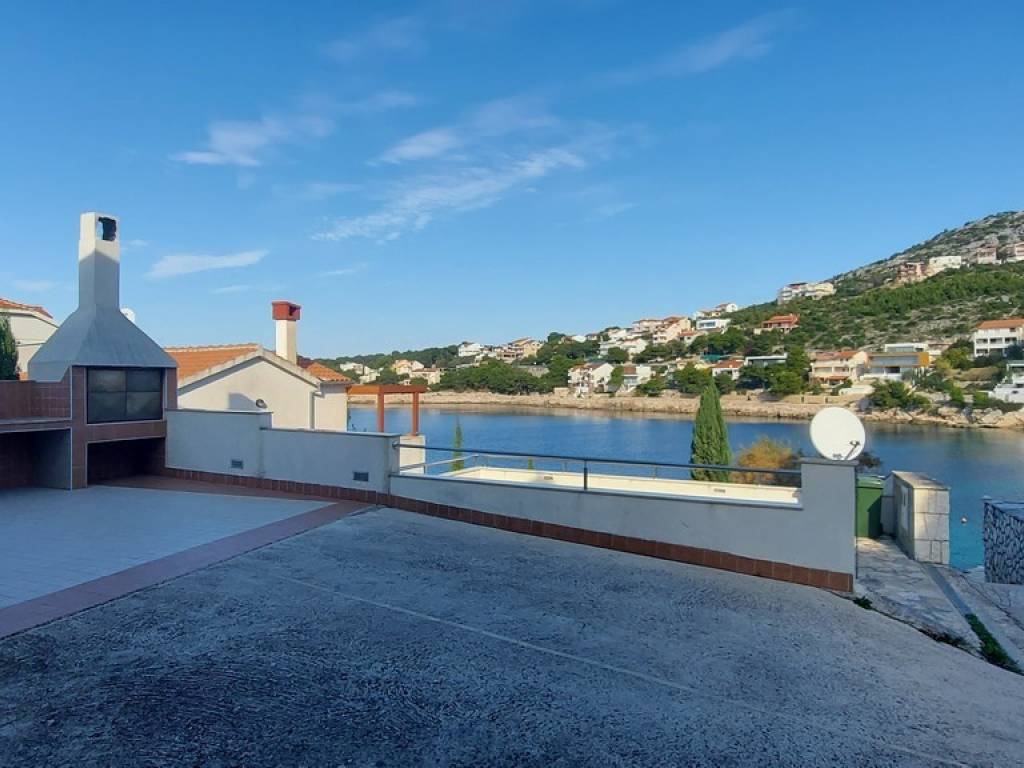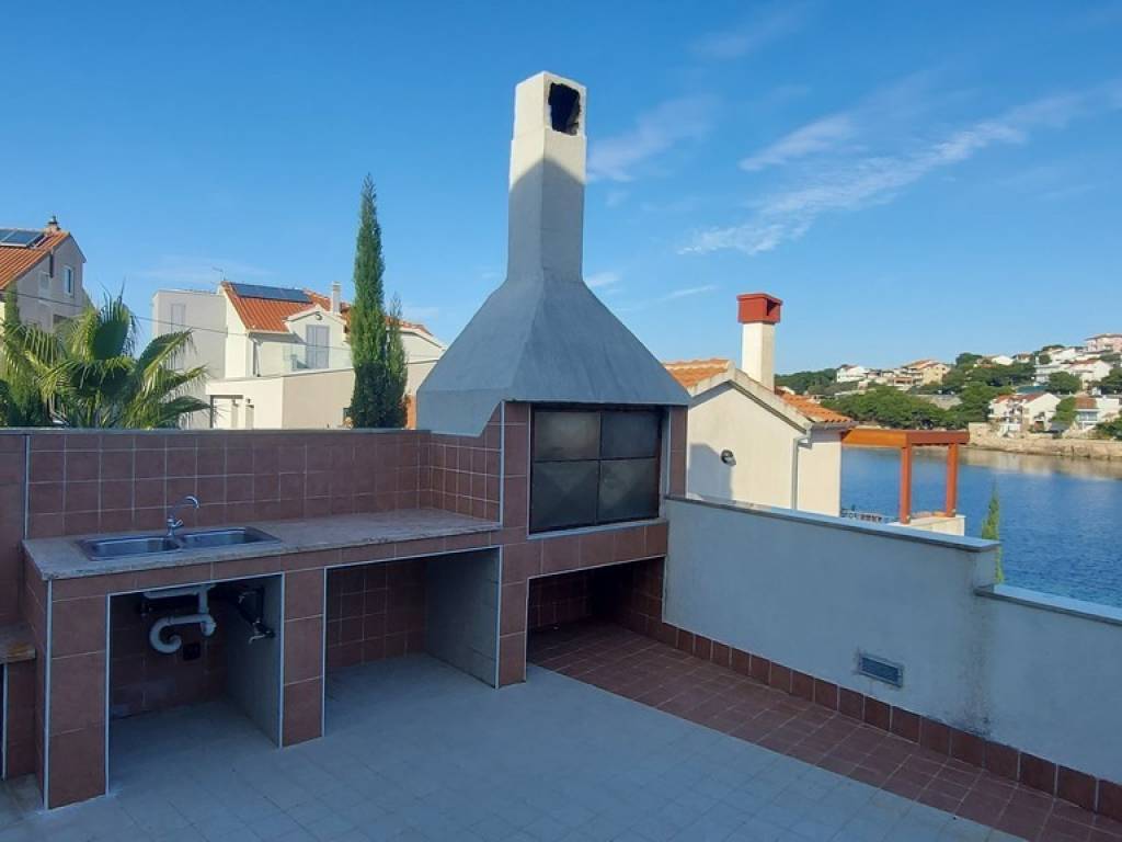 For sale: house near Primošten, just 20m from the sea. Three floors, 6 bedrooms, 5 bathrooms, terrace with sea view and barbecue, studio apartment, and mooring. Listed by Nekretnine Auxilium. The size of the plot is 193m2, while the house is 220m2 and consists of three floors. In the basement there is a large room that can be used for various purposes, a mini kitchen and a bathroom. On the ground floor there is a comfortable apartment with two bedrooms and a terrace with a barbecue and an open view of the sea. On the first floor there is a studio apartment, a separate room with a coupon and a one-bedroom apartment. The view from the terrace of the first floor is perfect. The house has a berth for use.