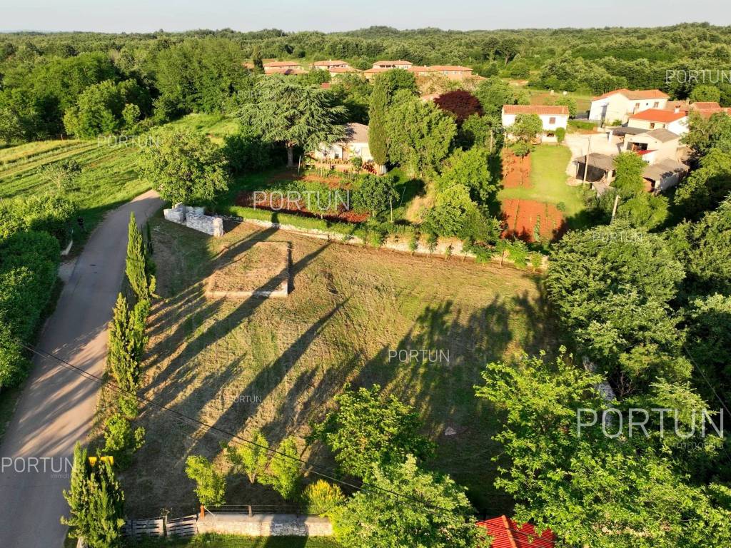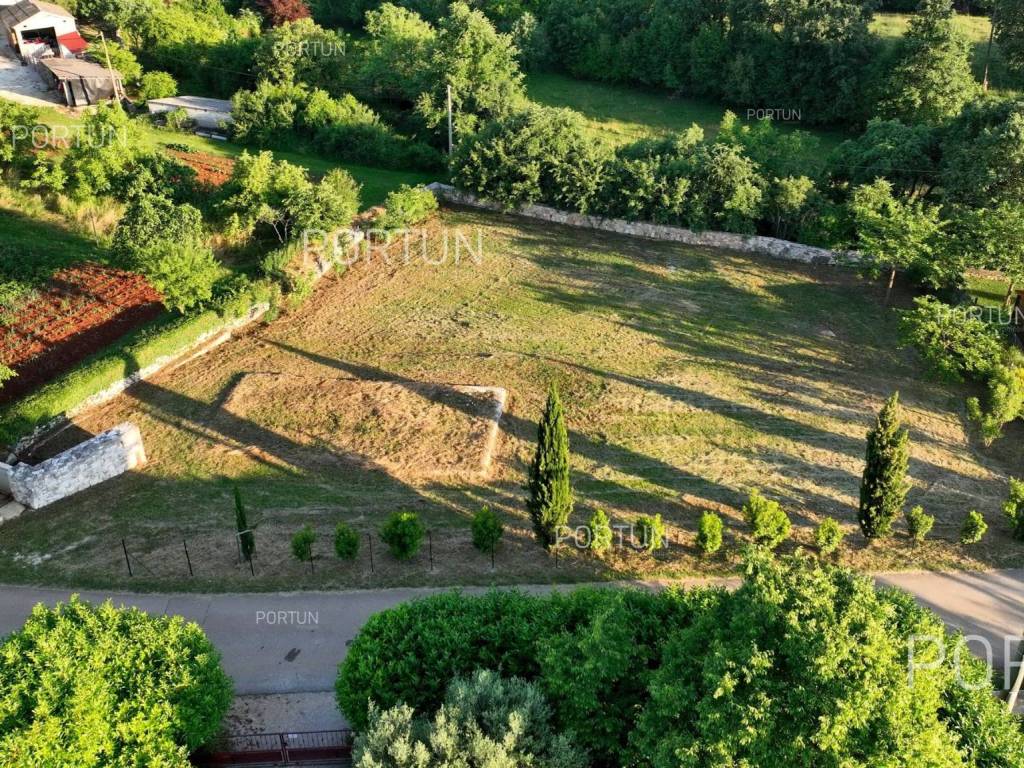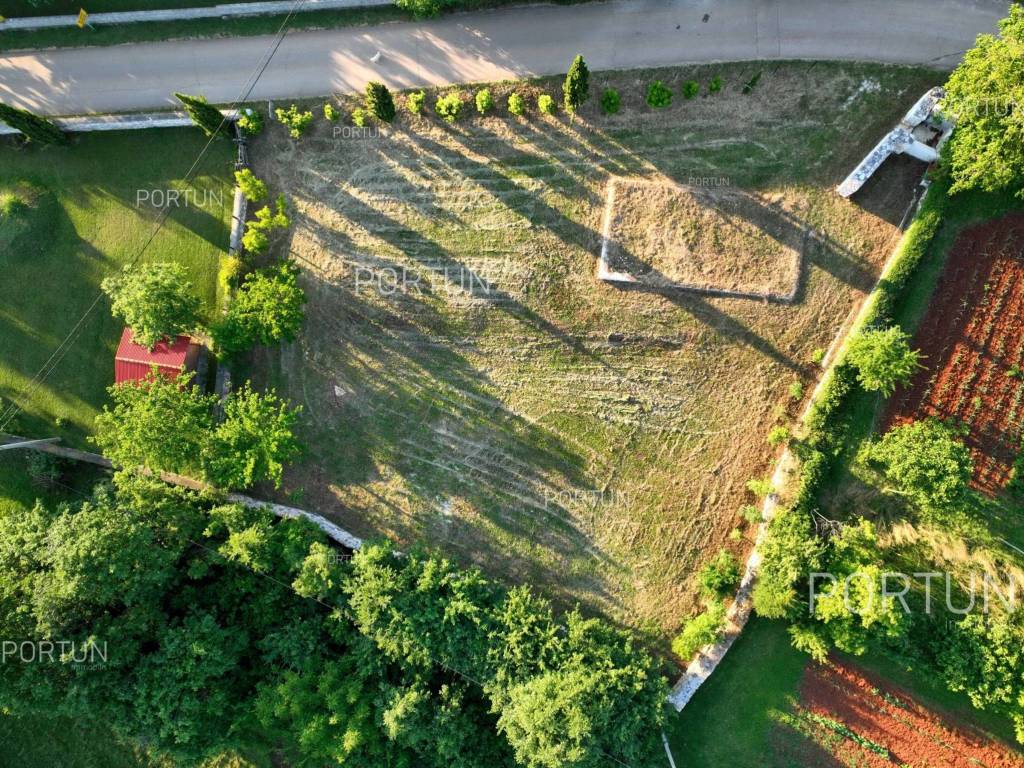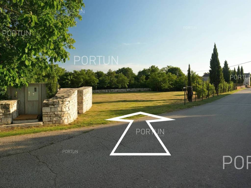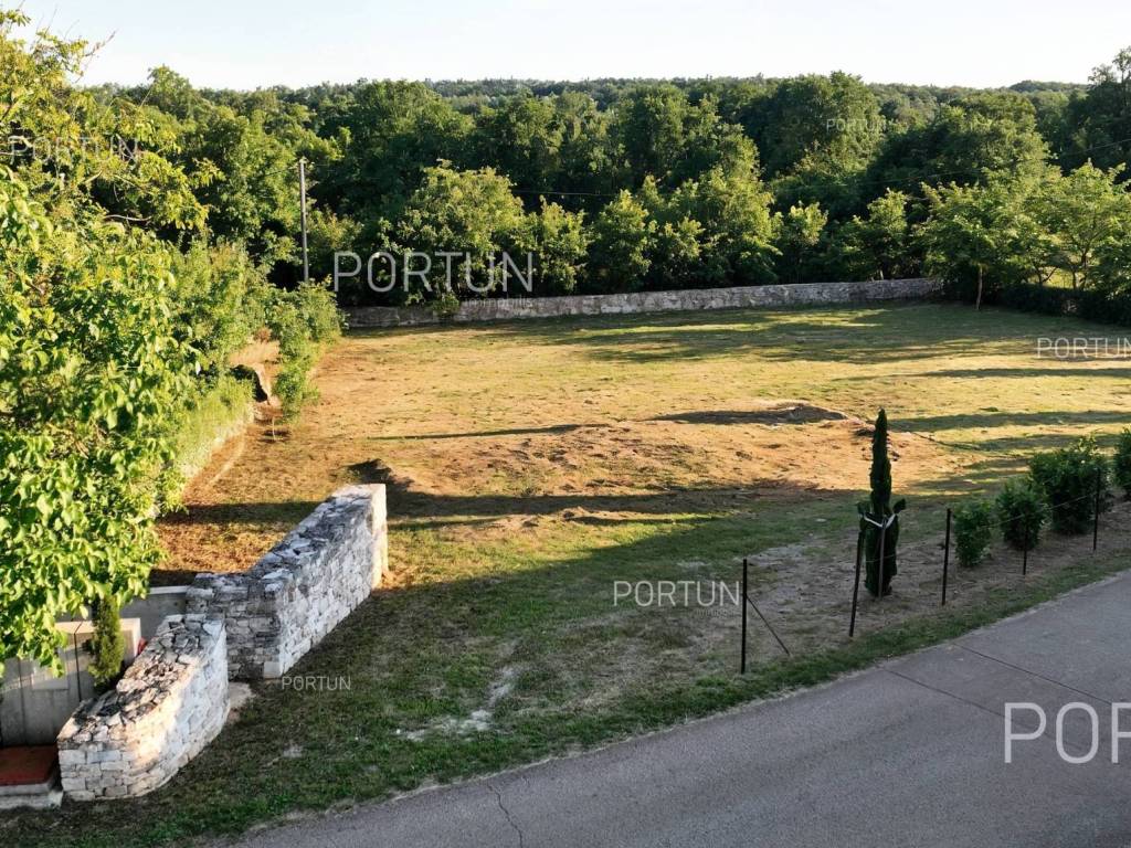 In the picturesque village of Otočani, between Svetvinčenat, Kanfanar and Žminj, a building plot of 1,200 m2 is for sale. Located on a gentle southwest-facing slope, the land offers a view of greenery and old stone houses. Infrastructure is provided, and privacy is guaranteed by greenery and stone walls.This property is a building plot in a small Istrian village. It is enclosed by stone walls, providing additional safety and privacy. An ideal opportunity for building a family home or a holiday villa in authentic Istrian surroundings.The land is situated on a gentle slope facing southwest. From this position there is an open view of the surrounding greenery and stone houses in the distanceperfect for those seeking peace and a natural environment.The land is enclosed with stone walls on three sides, while the borders are lined with laurel bushes, shrubs, and native trees. Two mulberry trees provide natural summer shade and rustic charm.The land is equipped with an electric connection of 17.25 kW, with a meter installed in the wall facing the road. A water connection is also available, with the meter in a roadside shaft. The entrance area is already formed with a space for waste and composting.It is only 3 km from Kanfanar, 4 km from Svetvinčenat and 19 km from Rovinj. Beaches are about 20 km away. Nearby are shops, restaurants, a school, kindergarten and a health center. Pula Airport is 33 km away, and the motorway is easily accessible.For more information or to schedule a viewing, feel free to contact us. This parcel is waiting for its new ownermaybe that's you!Distances from the propertyKanfanar | 3 kmSea | Beach 20 km Services | Food store 3,5 km - Cafe or bar 3,5 km - Inn or restaurant 4 km - Elementary School 4 km - Kindergarten 4 km - Health center 20 km Nearby towns | Svetvinčenat 4 km - Rovinj 19 km Traffic | Highway entry Kanfanar 7 km - Pula Airport 33 km Attractions | Abandoned medieval town Dvigrad 7 km - Cave Feštinsko Kraljevstvo 10 km Project with PermitThe land comes with a main project for the construction of a highly energy-efficient house with a swimming pool, four bedrooms and four bathrooms. A secondary building with a summer kitchen and parking for several cars is also planned next to the main house.From the living room and dining area, there is access to a large covered terrace with a decking floor extending along the pool. The kitchen opens onto another covered terrace with a planned outdoor living area, perfect for summer gatherings.Lush greenery surrounding the property ensures complete privacy and blends harmoniously with nature. From the pool terrace, steps lead down to a green garden with plenty of space for relaxation in the shade of two mulberry trees.All necessary documentation for construction is prepared, allowing for an immediate start.Services Connection to the power grid | Three-phase current | 17,25 kW Connection to the water supply network Paved public access road | Public lightingLand statusThe land is located entirely within the boundaries of the construction area. DocumentationExtracted documents | Building permit - Main projectArea calculationThe land area amounts to 1.200 square meters. Data source = Cadastre data