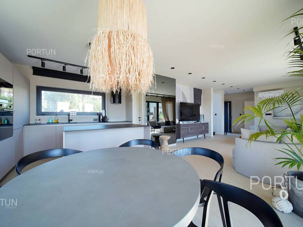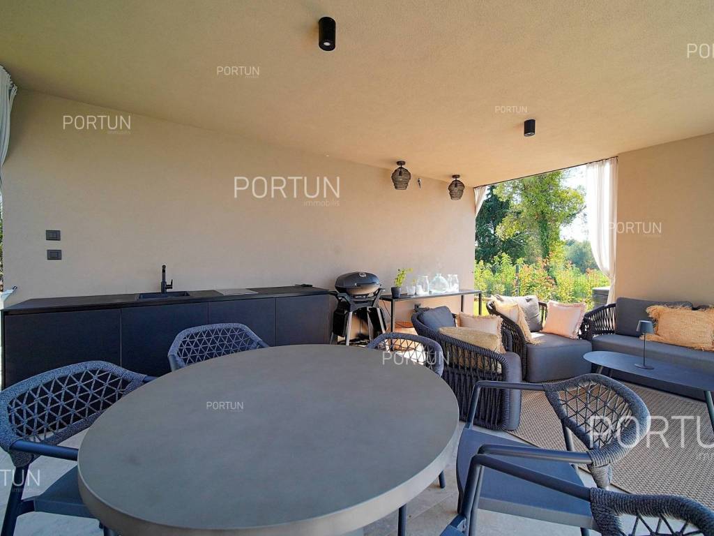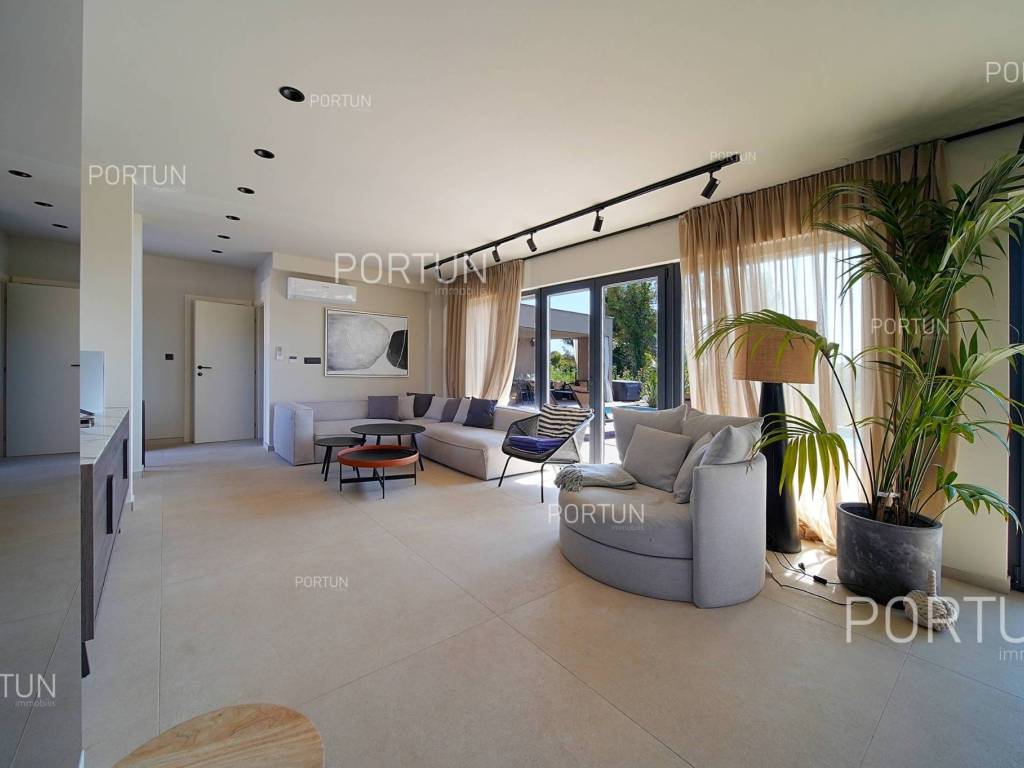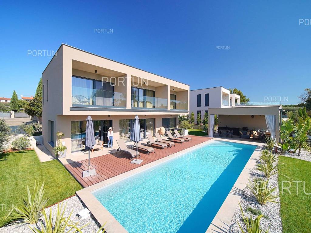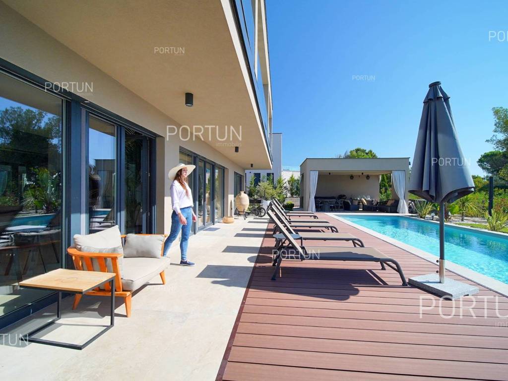 The modern and airy villa on the west coast of Istria, near Poreč, in addition to its attractive design, offers a view of greenery and a large swimming pool, and is less than two kilometers from the sea. Designed with modern aesthetics in mind, the villa boasts a sleek and contemporary architectural style, characterized by its clean lines and minimalistic design. As you approach the villa, you're immediately captivated by the striking glass openings that adorn the facade and not only flood the interior spaces with natural light, creating a seamless connection between the indoor and outdoor areas. One of the standout features of this villa is its long swimming pool, which runs parallel to the villa, offering a luxurious spot for a refreshing dip. The pool stretches out invitingly, reflecting the sun's rays during the day and exuding a tranquil ambiance in the evening.Step inside, and you'll discover a thoughtfully designed layout that perfectly balances comfort and style. The villa comprises three bedrooms, each equipped with its own ensuite bathroom and terrace. These private retreats offer a sanctuary of relaxation, where you can enjoy panoramic views from the comfort of your bed. In addition to the three bedrooms, there is an extra bedroom that can serve as a guest room or a versatile space to suit your needs. The open concept living room seamlessly connects with the kitchen, creating a spacious and inviting atmosphere. This central hub of the villa is designed to foster a sense of togetherness, allowing for effortless interaction between family and friends. The south orientation ensures an abundance of natural light throughout the day, further enhancing the airy and bright ambiance.Venturing outside, you'll find a beautifully landscaped outdoor area complete with a spacious sundeck, perfect for lounging under the Mediterranean sun. Adjacent to the sundeck is a luxurious jacuzzi, offering a blissful oasis where you can unwind and enjoy the magnificent surroundings. For those who appreciate culinary delights, the villa boasts a summer kitchen in the outdoor area. Equipped with state-of-the-art appliances and a dining area, it presents an ideal setting for hosting al fresco meals and entertaining guests. In summary, this villa near Poreč embodies modern luxury and sophistication. With its captivating glass openings, long swimming pool, well-appointed bedrooms, outdoor oasis, and open living spaces, it offers a truly idyllic retreat for those seeking a refined coastal lifestyle.LocationThe lush Mediterranean greenery and forests merge with the blue seas to make a magical landscape of the Istrian oasis, which is perfect for lovers of simple and fulfilling life, but also for all those who like to combine modern living with natural ambient. On the western coast of the Istrian peninsula, there is a city with a thousand-year history, Poreč with the charming old town with its mosaics and sights under the auspices of UNESCO, the tradition of wine and olives cultivation, local varieties and groceries, quiet coves, long coastline and green interior riches make it an ideal place to live. Sea Beach 1,6 km Services Food store 350 m Cafe or bar 1000 m Inn or restaurant 1,1 km Elementary School 1,7 km Kindergarten 1,5 km Health center 7 km Pharmacy 1,6 km Marina 1,6 km Sports and fun Soccer field 1000 m Basketball court 1,7 km Cycling and hiking trail Parenzana 9,4 km Adventure park 2,3 km Traffic Nearest highway entry 10,5 km Portorož Airport 30 km Attractions Geomorphological nature monument Baredine Pit 6,2 km About the propertyThe estate which extends to 601 square meters comprises: Two storey house 4 Bedrooms 3 Bathrooms 2 Floors 153,91 m2Auxiliary building 1 Floor approx. 25,00 m2Swimming pool approx. 40,00 m2LayoutThe house with a classic layout, with 179 square meters, is spread over two floors, namely the ground floor and the 1st floor. Ground floor The entrance to the house is on the ground floor. This 101,57 m2 floor includes a living room with kitchen and dining room 43,08 m2, one bedroom, a covered terrace 20,16 m2, an covered entrance and a laundry. First floor Internal straight stairs lead to the upper level, that is to the 1st floor. This 77,34 m2 level features three bedrooms with en suite bathrooms, three covered terraces, a corridor and a staircase. The two key rooms in this house are The living room with kitchen and dining room Ground floor 43,08 m2 South facing A view of the greenery Exit to the covered terrace Spacious living room Large glass walls Island kitchen Modern design Table 6 ChairsThe bedroom First floor 19,18 m2 South facing A view of the greenery Exit to the covered terrace Modern bathroom with shower Double bed LightingExtras Parking for two carsAbout the houseThe entrance to the house is on the ground floor level, from the north side, and vertical communication takes place via an internal staircase. The basic architectural characteristics of this new multi-story building are: Floors Ground floor + First floor Orientation South Wooden floor structure Roof Flat roof E.P.C. Awaiting EPC Built in 2023Joinery Aluminum joinery with double glazing Aluminum entry door Classic interior doorsMultimedia Installation for TV in each bedroomHeating and cooling Underfloor heating with a heat pump Air conditioning Heat pumps Combined water boilerFlooring Top quality ceramic tilesOutdoor spaceEquipment Outdoor lighting Drip irrigationFences Hedge Concrete wallDriveway Metal door Motor drive Slide openingOutdoor pool Skimmer pool 40,00 m2 Concrete construction Pool liner: Ceramic tiles Disinfection of water with chlorine Sunbathing area Shower Beach lightingServices Connection to the power grid Connection to the water supply network Planned connection to the sewage network Paved public access roadReal estate statusThe property is located entirely within the boundaries of the construction areaDocumentationExtracted documents Geodetic situation Building permit Main projectArea calcu