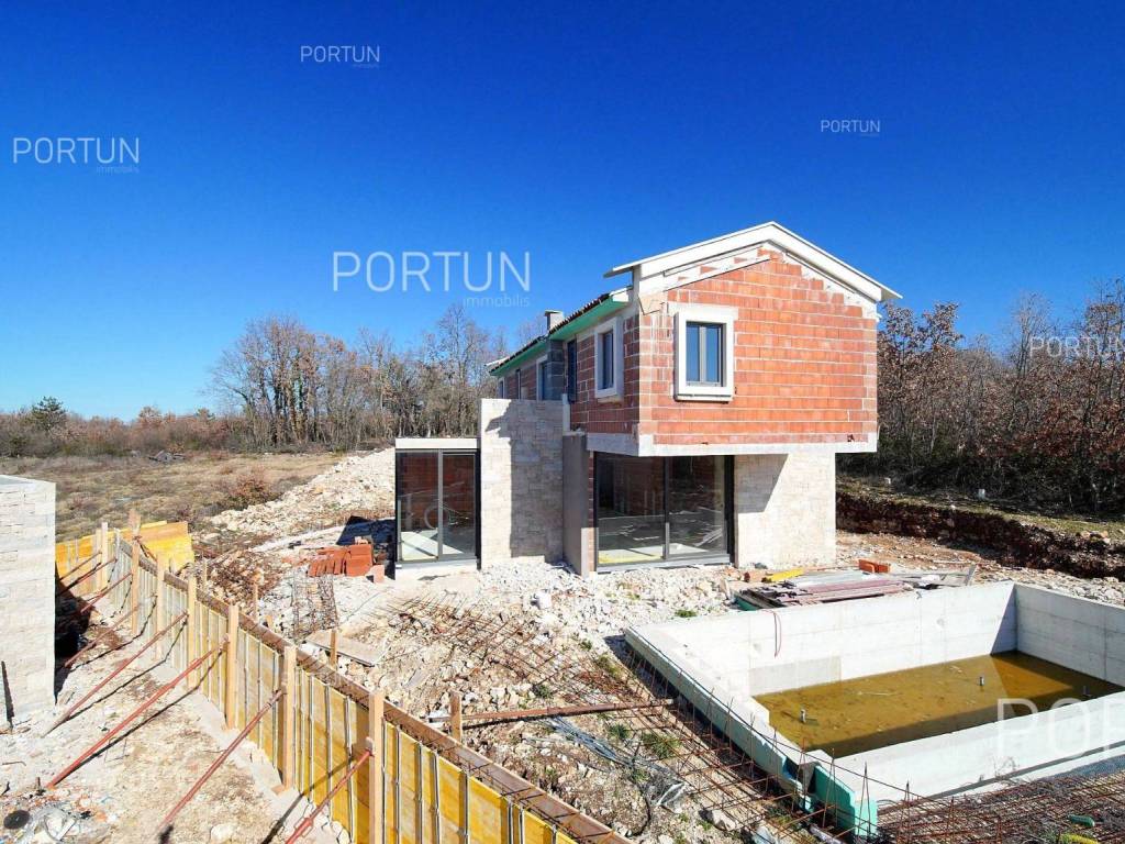 This new stone house is situated in a peaceful, green environment near St. Lovreč, offering an ideal escape from the hustle and bustle of city life. With its rustic charm and modern comforts, this house offers a perfect blend of tradition and luxury. Its impressive exterior seamlessly blends with the surroundings, while the interior exudes elegance and comfort. With three spacious bedrooms and one bathroom each, this house has enough space to accommodate a family of six or a group of friends. The ground floor of the house offers auxiliary rooms and a spacious living area connected to the kitchen and dining room, creating a comfortable space for socializing and relaxation. The outdoor area is well-appointed, with a planned pool, summer kitchen, and parking space, ideal for outdoor enjoyment. The location of this house is excellent, with numerous trails and walking paths nearby, allowing for exploration of nature and outdoor activities. Additionally, several fine restaurants with local specialties are just a few minutes' drive away, providing an opportunity to enjoy authentic Istrian cuisine. Furthermore, the proximity to famous coastal towns such as Poreč, Rovinj, and Vrsar offers various options for seaside outings and exploring the Istrian coast. As for equipment and appliances, this house will be equipped with top-notch technology and comforts such as underfloor heating, Mitsubishi heat pump, air conditioning, aluminum joinery, and an alarm system. Outdoor amenities such as automatic irrigation, motorized driveway gates, CCTV, and a biological wastewater treatment plant further enhance the functionality and security of this beautiful home. In summary, this stone house offers a perfect combination of comfort, luxury, and proximity to nature, making it an ideal place to enjoy a relaxed lifestyle on the beautiful Istrian peninsula. LocationRemnants of the distant Roman past, the architecture of the Venetian Republic, colorful villages on hills, picturesque coastal towns with a labyrinth of streets and stone houses, a panoramic view of the sea, inspiring cuisine and much more make Istria one of a kind. In the western part of Istria, set on a hill just 10 km to the sea, there is Sveti Lovreč, known as the city of 9 towers, surrounded by town walls and the ancient pillar of shame at its square. A wonderful panoramic location in the interior of Istria, in the vicinity of Sveti Lovreč, where the house is positioned, offers numerous amenities:Sea | Beach 20 km Services | Food store 8 km - Cafe or bar 8 km - Inn or restaurant 4 km - Elementary School 8 km - Kindergarten 8 km - Pharmacy 8 km Sports and fun | Mini soccer field 3 km - Basketball court 3 km - Water Park Aquacolors 22 km - Special forest vegetation reserve "Kontija" 13 km Nearby towns | Tinjan 8 km - Kanfanar 12 km Traffic | Highway entry Medaki 9 km - Pula Airport 46 km About the propertyThe estate which extends to 656 square meters comprises: Main house | 3 Bedrooms - 3 Bathrooms - 2 Floors - 176,46 m2Summer kitchen | 1 Floor - 10,10 m2Swimming pool | 30,00 m2LayoutThe modern house, with 187 square meters, is spread over two floors, namely the ground floor and the 1st floor. Ground floor | The entrance to the house is on the ground floor. This 176,46 m2 floor includes a living room with kitchen and dining room, two covered terraces, a lavatory, a corridor, a staircase, a laundry and a pantry. First floor | Internal straight stairs lead to the upper level, that is to the 1st floor. This 10,10 m2 level features a master bedroom with en suite bathroom and walk in closet, two bedrooms with en suite bathrooms, a terrace and a corridor. The three most important rooms in this house are The living room with kitchen and dining room | Ground floor - 51,20 m2 - Northwest facing - Exit to the covered terrace - Large glass walls let in plenty of lightThe outdoor kitchen | 10,10 m2 - Northwest facing - Single-line kitchenThe master bedroom | First floor - 20,40 m2 - Northwest facing - Sea View - Modern design - Walk in closet - Bathroom with shower - Double bedParking spaces Parking for two carsAbout the houseThe entrance to the house is on the ground floor level, from the southeast side, and vertical communication takes place via an internal staircase. The basic architectural characteristics of this modernly designed multi-story building are: Floors | Ground floor + First floor Orientation | Northwest External walls | Styrofoam insulation 10 cm + Block brick wall 25 cm Concrete slab floors Roof | Pitched roof covered with clay tiles Construction began in 2023/11 | Planned completion of construction approx. in 2025/3EquipmentEquipment | Video intercom - Alarm system for the house - Video surveillance - Modern lighting - Sanitary ware - Bathroom furnitureJoinery | Aluminum joinery with double glazing - Aluminum entry door - Classic interior doorsMultimedia | TV in the living room - Installation for TV in each bedroomHeating and cooling | Underfloor heating - Air conditioning - Heat pumps Mitsubushi - Combined water boiler - ChimneyFlooring | Top quality ceramic tilesOutdoor spaceEquipment | Automatic irrigation - Drip irrigationFences | Hedge - Concrete wallDriveway | Metal door - Motor driveOutdoor poolOverflow pool 30,00 m2 | Concrete construction - Pool liner: Ceramic tiles - Disinfection of water with chlorine - LED lighting Services Connection to the power grid | Three-phase current | 17,25 kW Connection to the water supply network Biological waste water purifier Unpaved public access road | Distance to the paved road 260 mReal estate statusThe land is located entirely within the boundaries of the construction area. DocumentationExtracted documents | Building permit - Main projectArea calculationThe area of the house (186,56 m2) includes the areas of these spaces:Living area (Main house) = 132,06 m2*Terrace (Main house) = 22,00 m2*Covered terraces (Main house + Summer kitchen) = 28,20 m2*Storage space (Summer kitchen) = 4,30 m2**Areas ar