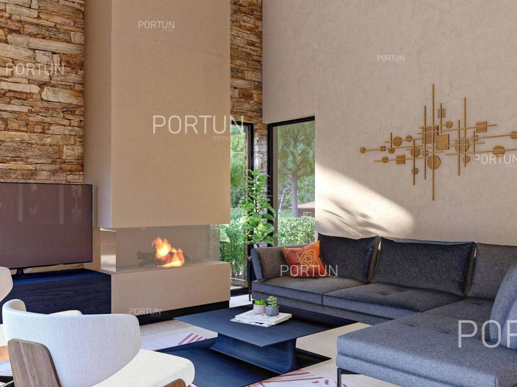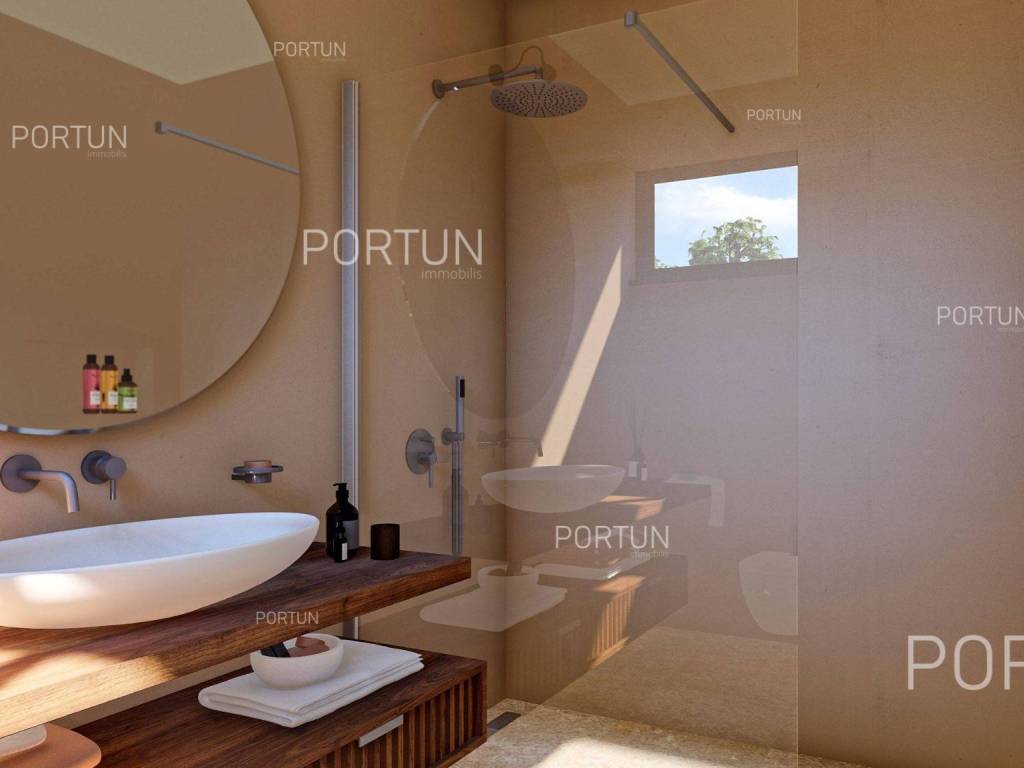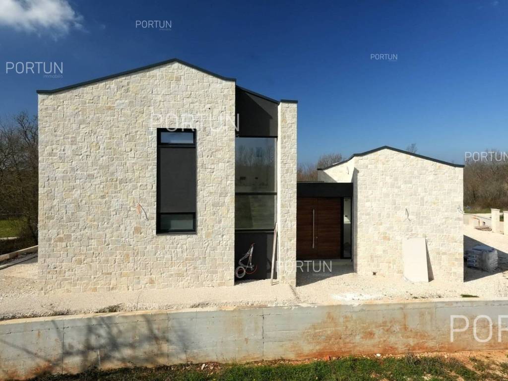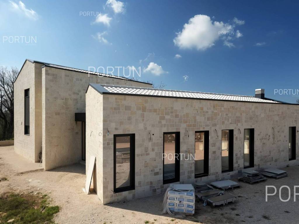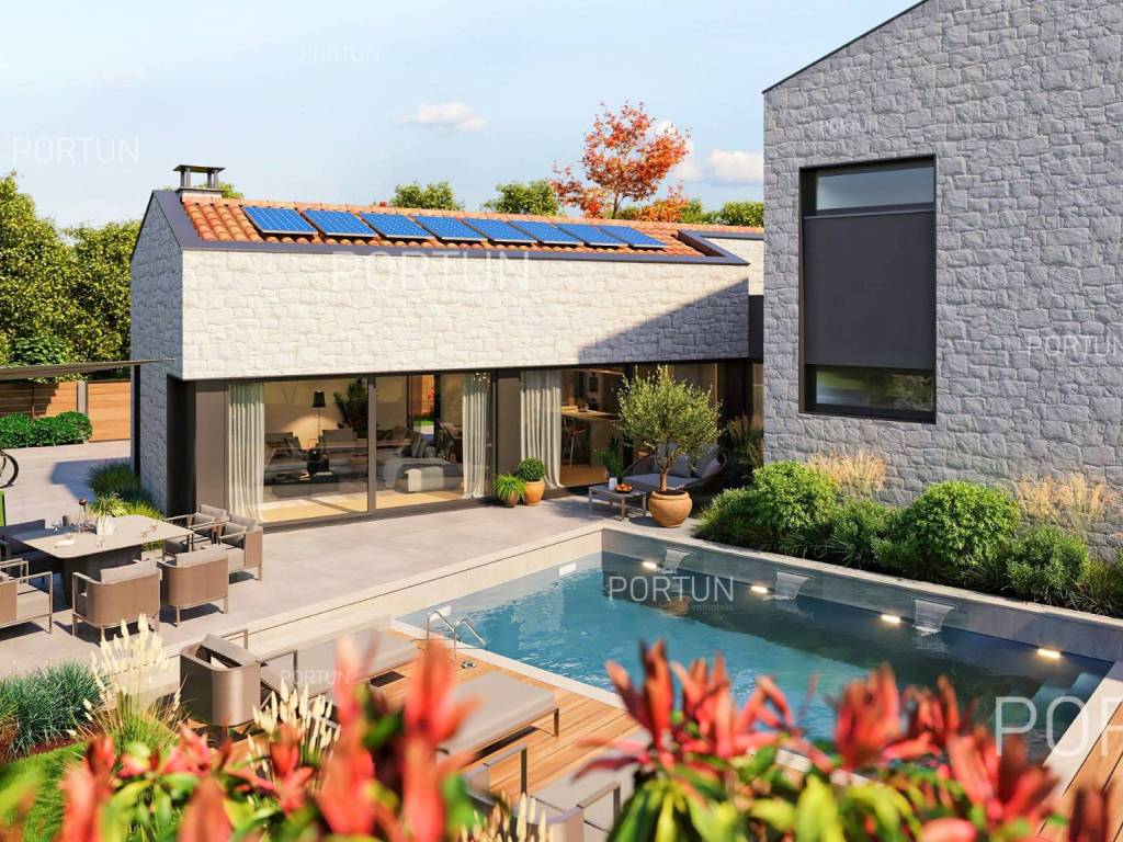 The refined contemporary holiday villa in the vicinity of Poreč offers extravagant design, lush green garden with diverse vegetation, efficient heating and cooling system, and an attractive sunbathing terrace by the pool. With four bedrooms and as many bathrooms, this extravagant villa is the perfect fit for the modern family in search of their future home in Istria. The visual solution is inspired by traditional local architecture, which in this case blends seamlessly with contemporary trends in holiday home design. In the larger house, the bedrooms are spread over two floors, totaling four, each with its own bathroom. The rooms feature modern design in warm wood tones and natural materials. On the ground floor, the larger house is connected to the smaller one, which contains an open-space living room with kitchen and dining area, as well as a technical room and laundry with a toilet. Thanks to the high ceiling with visible wooden roof structure, the living room impresses with its size and abundance of natural light. Numerous windows and a balcony allow excellent communication with the beautiful green surroundings and sunbathing terrace. It is planned that the house will be equipped with underfloor heating via a heat pump, triple carpentry, motorized blinds and solar collectors. The villa is located in a quiet location with numerous facilities nearby - restaurant 300 m, grocery store 4 km, beach 6 km and city center 6.7 km. LocationWith its cobblestone streets, old stone houses, medieval churches, endless vistas over the countryside and the sea, cute little shops, art galleries, wine bars and distinctive nature, Istria is not just a place to be, but a place to live! On the western coast of the Istrian peninsula, there is a city with a thousand-year history, Poreč with the charming old town with its mosaics and sights under the auspices of UNESCO, the tradition of wine and olives cultivation, local varieties and groceries, quiet coves, long coastline and green interior riches make it an ideal place to live. Peaceful and tranquil environment on the western part of the Istrian peninsula, not far from Poreč, where the house is positioned, is rich in various amenities:Sea | Beach 7 km Services | Food store 4 km - Cafe or bar 6 km - Inn or restaurant 300 m - Elementary School 2 km - Health center 6 km Sports and fun | Mini soccer field 250 m - Special forest vegetation reserve "Kontija" 19 km Nearby towns | Tar 10 km - Vrsar 14 km Traffic | Highway entry Baderna 12 km - Pula Airport 60 km Attractions | Geomorphological nature monument Baredine Pit 6 km LayoutThe bright house, with 168 square meters, is spread over two floors, namely the ground floor and the 1st floor. Ground floor | The entrance to the house is on the ground floor. This 117,43 m2 floor includes a living room with kitchen and dining room, two bedrooms with en suite bathrooms, a lavatory, a corridor, an covered entrance, a staircase and a laundry. First floor | Internal turning stairs lead to the upper level, that is to the 1st floor. This 50,45 m2 level features two bedrooms with en suite bathrooms and a corridor. The two key rooms in this house are The living room with kitchen and dining room | Ground floor - 44,00 m2 - Southwest facing - Living room with fireplace - Visible wooden beams contribute to the warm atmosphere - High ceilings - Large glass walls - Exit to the yard - Corner sofa set - Coffee table - TV - Island kitchen - Modern designThe bedroom | Ground floor - 19,25 m2 - South facing - Exit to the terrace - Wardrobe closet - Modern bathroom with shower - Double bed - Dressing tableAbout the houseThe entrance to the house is on the ground floor level, from the northeast side, and vertical communication takes place via an internal staircase. The basic architectural characteristics of this well-maintained two-story building are: Floors | Ground floor + First floor Orientation | Southwest External walls | Stone wall + Insulation + Block brick wall 25 cm Concrete slab floors Roof | Pitched roof covered with clay tiles Parking canopy for two cars Construction began in 2023/10 | Planned completion of construction in 2024/8Outdoor pool Skimmer pool 57,00 m2 | Concrete construction - Pool liner: Ceramic tiles - Salt water (disinfection by chlorine electrolysis) - Shallow part - Waterfall - Water heating - LED lighting Sunbathing area paved with stone | Outdoor shower Services Connection to the power grid Connection to the water supply network Unpaved public access road | Distance to the paved road 110 mReal estate statusThe land is located entirely within the boundaries of the construction area. DocumentationExtracted documents | Building permit - Main project