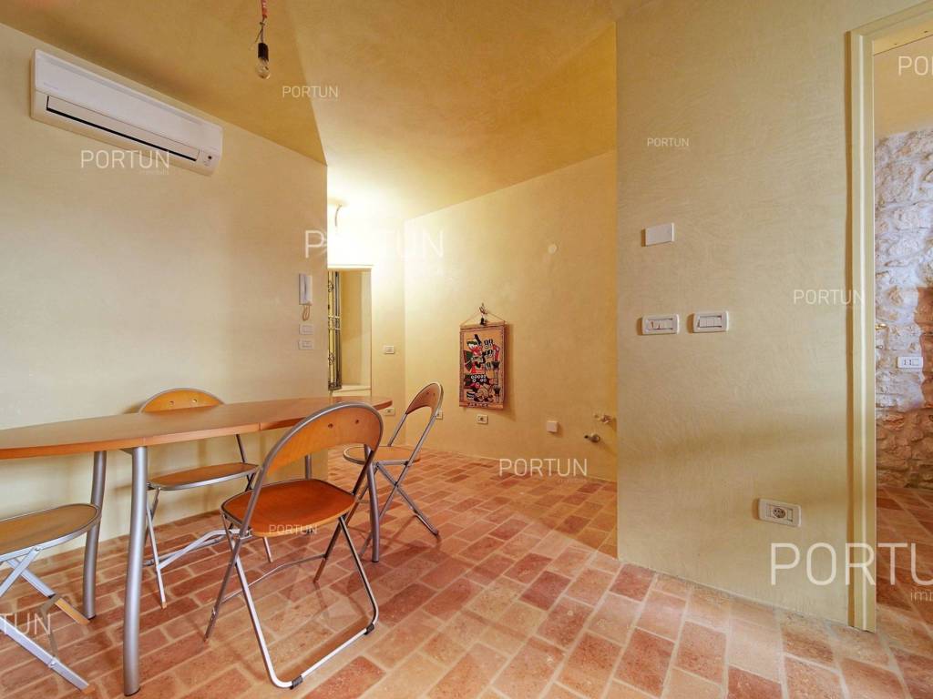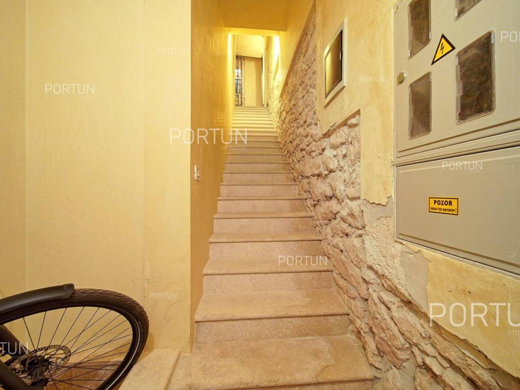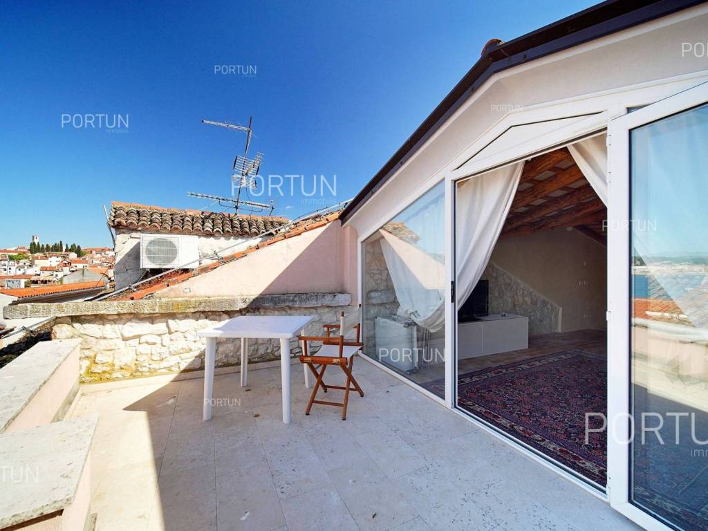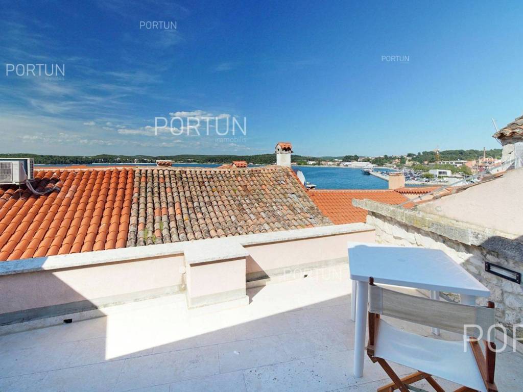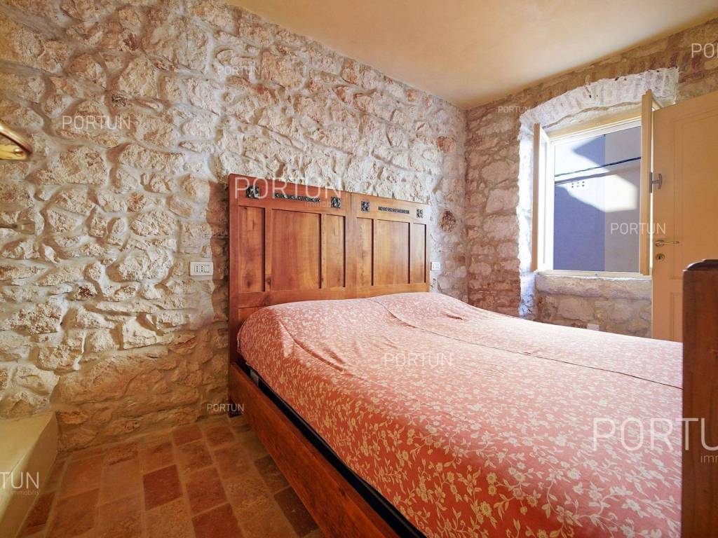 In the heart of picturesque Rovinj, a thoroughly renovated stone house is for sale, which includes two apartments, office space and a terrace with a view of the sea. The interior is full of warm, natural materials that give the house a traditional and rustic look. Especially attractive is the top floor with stunning wooden roof beams and stone walls, where the main living room and terrace with a sea view are located. The spacious house, with an area of 180 square meters, extends over four floors: ground floor, first floor, second floor and attic. Ground floor | On the ground floor level there is the entrance to the house, office space and staircase, total area 45 m2. First floor | On this floor, with an area of 45 m2, there is a one-room apartment. The second floor and the attic are connected in a unique space of about 90 m2. On the second floor there is a bedroom with a bathroom, while in the attic there is a living room, a kitchen, a dining room and an attractive terrace. Located in an idyllic location in the heart of old Rovinj, this house full of warmth and Mediterranean charm is ideal as a summer home for two small families. Feel free to contact us if you have any questions, we will be happy to show you this beautiful property. LocationThe peninsula full of fairy-tale nature, rich cultural heritage and valuable preserved buildings that have been writing the history of the local areas for centuries make Istria a unique treasure of Croatia. The charm of Rovinj, Istrian most known seaside town, perhaps comes from the mixture of the Venetian architecture with the lovely harbor and the Italian vibes. Stone-paved alley in the old part of Rovinj, where the house is positioned, offers numerous amenities:Sea | Baluota beach 160 m Services | Food store 300 m - Cafe or bar 160 m - Inn or restaurant 190 m - Elementary School 500 m - Kindergarten 750 m - Health center 850 m - Pharmacy 850 m Sports and fun | Handball court 1000 m - Basketball court 500 m - Public swimming pool 3 km - Forrestal park Punta Corrente 2,4 km Nearby towns | Bale 14 km - Kanfanar 18 km Traffic | Highway entry Kanfanar 15 km - Pula Airport 40 km Attractions | Special ornithological reserve Palud 10 km Parking spaces Parking lot Valdibora 330 mAbout the houseThe entrance to the house is on the ground floor level, from the northeast side, and vertical communication takes place via an internal staircase. The basic architectural characteristics of this restored stone house are: Floors | Ground floor + First floor + Second floor + Attic Orientation | Northeast External walls | Stone wall Concrete slab floors Roof | Pitched roof covered with clay tiles Built approx. in 1800 Thoroughly renovated 2011FurnitureFurniture | All furniture is included in the priceJoinery | Wooden joinery with double glazing - Wooden shutters - Wooden entry door - Internal wooden doorsHeating and cooling | Air conditioningFlooring | TerracottaServices Connection to the power grid Connection to the water supply network Connection to the sewage system Stone-paved street | Distance to the paved road approx. in 200 mArea calculationThe area of the house (approx. 180,00 m2) includes the areas of these spaces:Living area (Ground floor + First floor + Second floor + Attic) = 170,00 m2*Terrace (Attic) = 10,00 m2**Areas are calculated with coefficient c= 1,00Data source = Unofficial measurment of the space