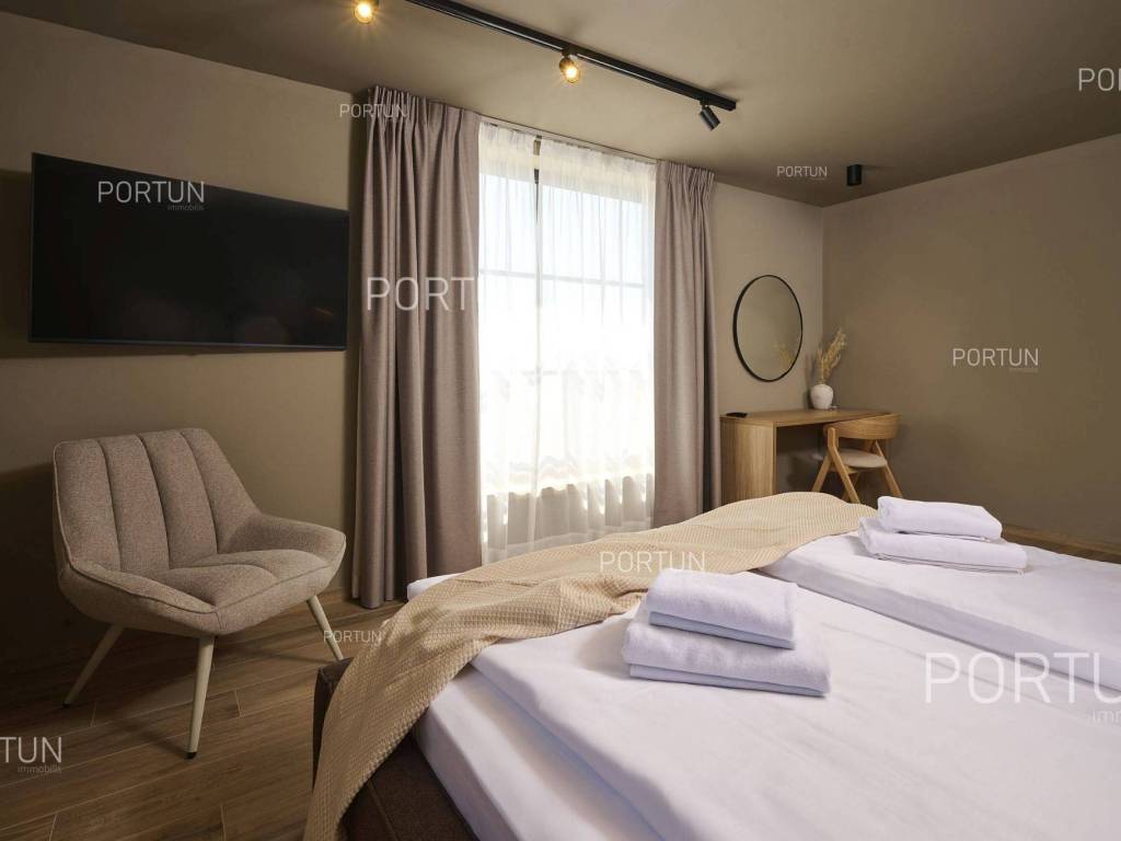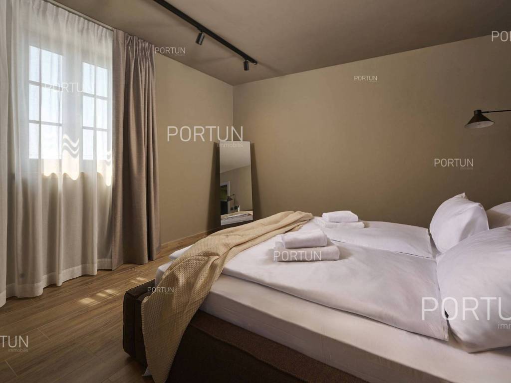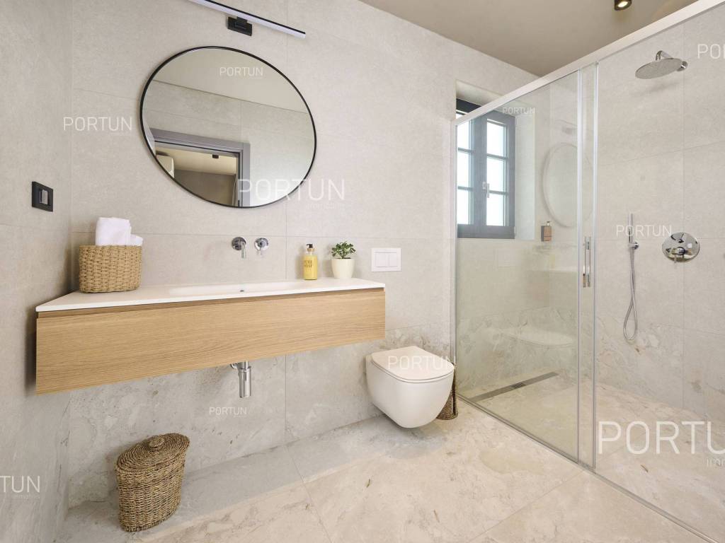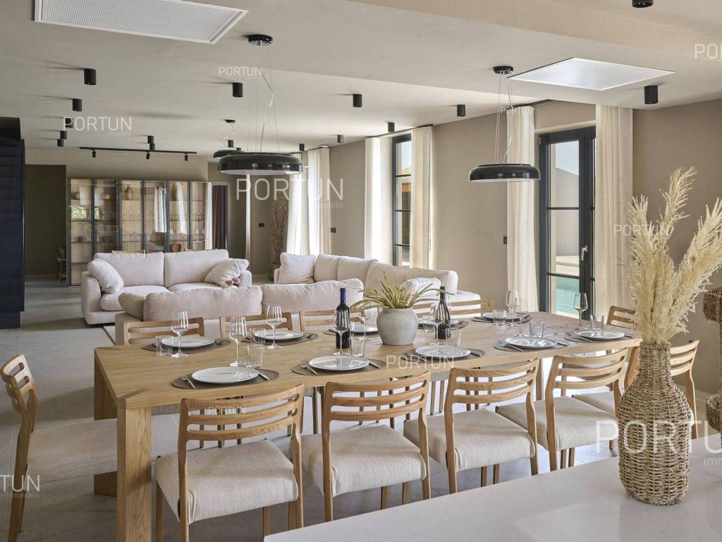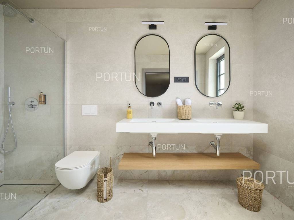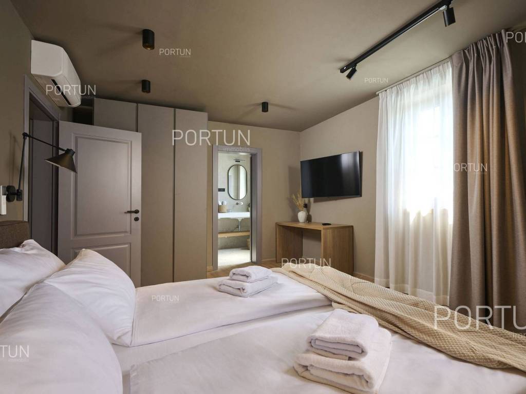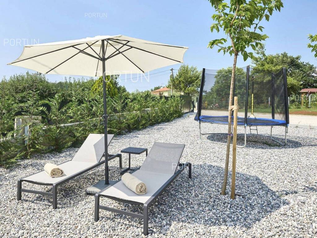 This beautiful luxury holiday villa, located near Poreč, offers five spacious bedroomswith en-suite bathrooms and is ideal for larger families or groups of friends. Located in a quiet little village, only ten kilometers from the coast, this villa radiates traditional charm and refined elegance. The interior of the villa fascinates with its light, airiness and modern design, providing the perfect combination of comfort and luxury for relaxing and enjoying your vacation. The house is still under construction, but it already offers an exceptional set of contents. The outdoor space is also impressive, with a spacious 1,364 square meter courtyard surrounding the house, and a 50 square meter swimming pool. Heating and cooling are solved smartly and efficiently, through floor heating on a heat pump. There is also an auxiliary building in the yard that contains a large dining room with a fireplace, a sauna and technical rooms. The location of this house is ideal for those looking for a combination of peaceful country life and proximity to urban facilities. The sea and the beach are 12 km away, while the shop and cafe or bar are 2.3 km away. Poreč is 10 km away, and Rovinj is 25 km away. The layout of the house is practical and spacious. On the ground floor there is a living room with a dining room, a kitchen, a bedroom with a bathroom and a wardrobe, a covered terrace, one toilet, a corridor and a boiler room. On the first floor there are three bedrooms with bathrooms, a terrace, a corridor and a staircase. In the attic there is a master bedroom with a living room and a terrace with a hot tub. This elegant Istrian house offers everything you need for a comfortable and luxurious life, and our team is available for additional information. LocationOne of the most developed and beautiful regions of Croatia is green-blue Istria, known as the "new Tuscany", which represents a combination of unique natural sights and rich cultural heritage. On the western coast of the Istrian peninsula, there is a city with a thousand-year history, Poreč with the charming old town with its mosaics and sights under the auspices of UNESCO, the tradition of wine and olives cultivation, local varieties and groceries, quiet coves, long coastline and green interior riches make it an ideal place to live. A typical rural location in the vicinity of Poreč, where the villa is situated, offers a whole spectrum of amenities nearby:Sea | Beach 12 km Services | Food store 2,3 km - Cafe or bar 2,3 km - Inn or restaurant 2,5 km - Elementary School 2,4 km - Health center 9 km Sports and fun | Soccer field 9 km - Basketball court 9 km - Water Park Aquacolors 11 km - Special forest vegetation reserve "Kontija" 8 km Nearby towns | Tar 16 km - Rovinj 25 km Traffic | Highway entry Baderna 5 km - Pula Airport 46 km Attractions | Geomorphological nature monument Baredine Pit 15 km About the propertyThe estate which extends to 1.364 square meters comprises: Main house | 5 Bedrooms - 5 Bathrooms - 3 Floors - 319,76 m2Auxiliary building | 1 Floor - 59,76 m2Swimming pool | 50,00 m2LayoutThe beautifully decorated villa with an excellent layout, with 320 square meters, is spread over three floors, i.e. through the ground floor, the 1st floor and the attic. Ground floor | The entrance to the villa is on the ground floor. This 154,30 m2 floor includes a living room with dining room, a kitchen, one bedroom with en suite bathroom and walk in closet, a covered terrace, a lavatory, a corridor and a boiler room. First floor | Internal straight stairs lead to the upper level, that is to the 1st floor. This 109,66 m2 level features three bedrooms with en suite bathrooms, a terrace, a corridor and a staircase. Attic | Internal straight stairs lead to the attic, the highest level of this villa. This floor, with 55,80 m2, boasts the second living room, a master's bedroom and a terrace. Parking spaces Parking for six carsAbout the villaThe entrance to the villa is on the ground floor level, from the northeast side, and vertical communication takes place via an internal staircase. The basic architectural characteristics of this well-maintained villa are: Floors | Ground floor + First floor + Attic Orientation | Southwest External walls | Styrofoam insulation 10 cm + Block brick wall 25 cm Concrete slab floors Roof | Pitched roof covered with clay tiles Construction began in 2023 | Construction is underwayFurniture and equipmentFurniture | All furniture is included in the priceEquipment | Video intercom - Video surveillanceJoinery | Aluminum joinery with double glazing - Schüco profiles - Wooden shutters - Aluminum entry door - Internal wooden doorsMultimedia | TV in the living room - SAT TVHeating and cooling | Underfloor heating with a heat pump - Air conditioning - Heat pumps - Combined water boilerFlooring | Top quality ceramic tilesOutdoor spaceEquipment | Outdoor lighting - Automatic irrigation - Drip irrigationFences | Privet hedge - A wall with a metal fenceDriveway | Metal door - Motor drive - Wing openingRelaxation zones Outdoor pool Skimmer pool | Concrete construction - Pool liner: Ceramic tiles - Disinfection of water with chlorine - Water heating - Pool cover Sunbathing area | Outdoor shower - Beach lighting Terrace Hydro massage bathServices Connection to the power grid Connection to the water supply network | Rainwater tank Septic tank Paved public access roadReal estate statusThe land is located entirely within the boundaries of the construction area. DocumentationExtracted documents | Building permit - Main projectArea calculationThe area of the villa (319,76 m2) includes the areas of these spaces:Living area (Ground floor + First floor + Attic) = 304,72 m2*Terraces (First floor + Attic) = 11,22 m2**Covered terrace (Ground floor) = 3,82 m2****Areas are calculated with coefficient c= 1,00**Areas are calculated with coefficient c= 0,25***Areas are calculated with coefficient c= 0,50Data source = Main projectThe total land area including the f