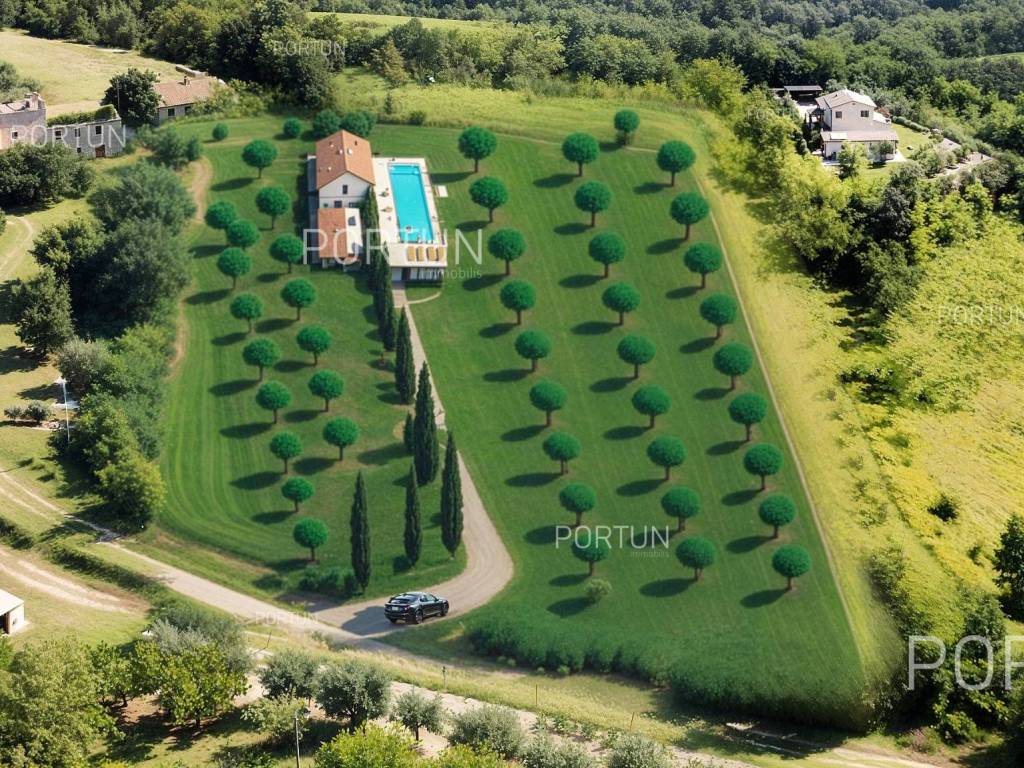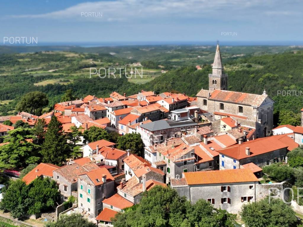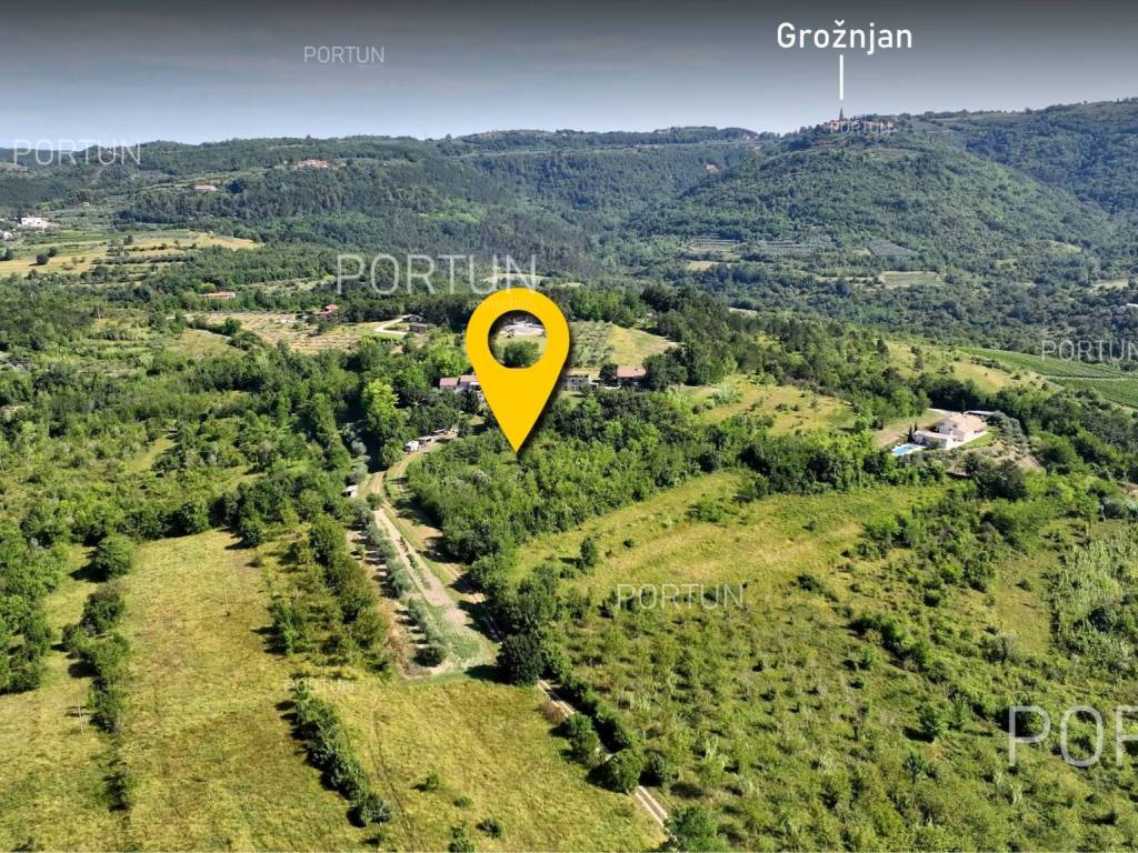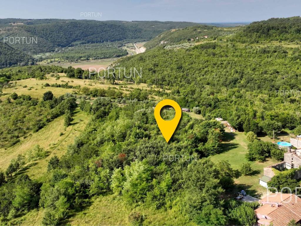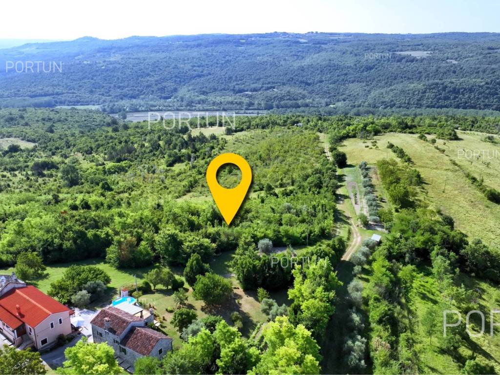 This beautiful land near Grožnjan, located at the top of a hill, offers a panoramic view of the Mirna river valley. With a total area of about 5,400 m, the land is divided into a construction part and agricultural land. The construction part of the land, which is located on the highest part of the terrain, has an area of about 1,200 m, which makes it ideal for building a villa with a fantastic view of the Mirna valley. The sellers are also the sole owners of this part. The agricultural land, which extends to 4,100 m, slopes slightly towards the southeast and is mostly also owned by the seller 47.5%, while the state owns 45.5% and the Municipality of Grožnjan about 7%. The entire complex forms a compact entity with dimensions of 90 x 45 m, and access to the land is provided via the access road that stretches along the western border of the land. This plot is perfect for anyone looking for panoramic views, peace and quiet, as the surrounding land is further down the hill outside the building zone, so nothing can be legally built in front. The warm sea air that comes through the Mirna river valley makes this land ideal for planting olives and other Mediterranean crops. There are numerous tourist attractions and places in the immediate vicinity: Grožnjan is only 5 km away, Buje 9 km, and Aquapark Istralandia 16 km. If you are looking for the perfect place to build a rural villa or country estate, this plot is a must see! Combined land in such an idyllic location with an open view is very rare to find on the market. For more information, contact our team. LocationAstonishing world in miniature; the largest peninsula of the Adriatic that lies below the Alps and is encircled by the Adriatic sea - the word is about amazing Istria. Grožnjan, beautiful as a postcard, known as the city of artists that flourishes in Central Istria on a hill by the river Mirna in a mystical stone from the Middle Ages feels like a fairy tale. Sea | Beach 20 km Services | Food store 5 km - Cafe or bar 5 km - Inn or restaurant 4 km - Elementary School 5 km - Pharmacy 9 km Sports and fun | Thermal spa Istarske toplice 18 km - Aquapark Istralandia 16 km Nearby towns | Buje 9 km - Novigrad 20 km Traffic | Highway entry Nova Vas 15 km - Portorož Airport 18 km Attractions | Protected forest in the Mirna river valley 4 km Services Public water and mains electricity infrastructure: along the land boundary Unpaved public access roadLand statusA part of the real estate is located within the limits of the residential construction area: Building land approx. 1.277 m2 Farmland approx. 4.118 m2Area calculationThe land area amounts to approx. 5.395 square meters. Data source = Cadastre data