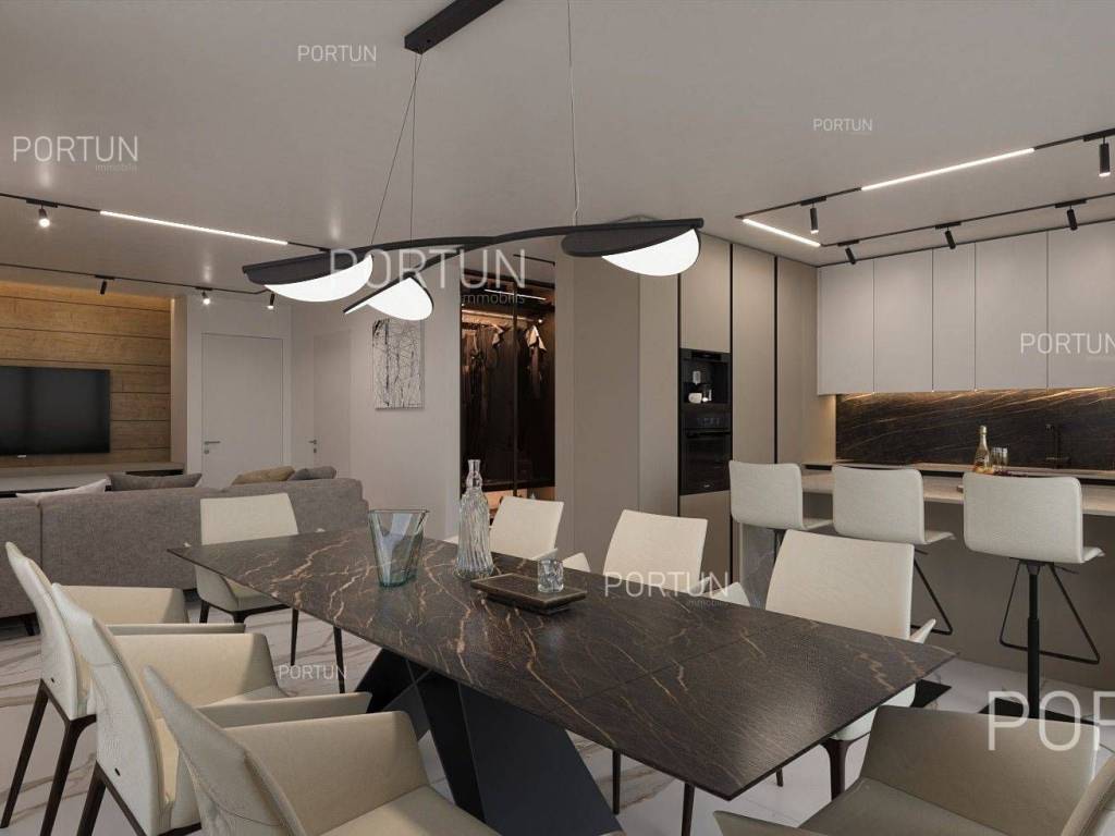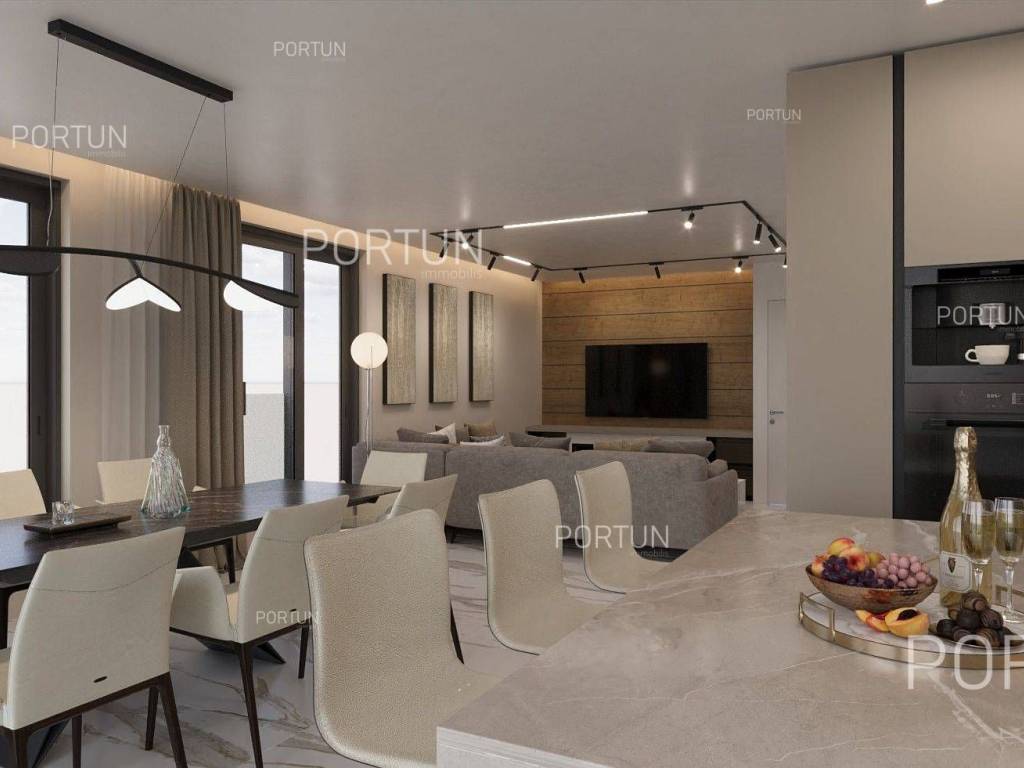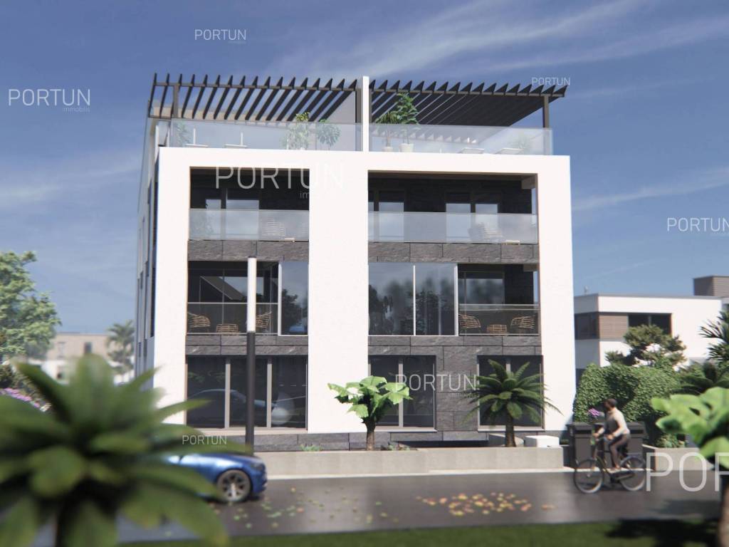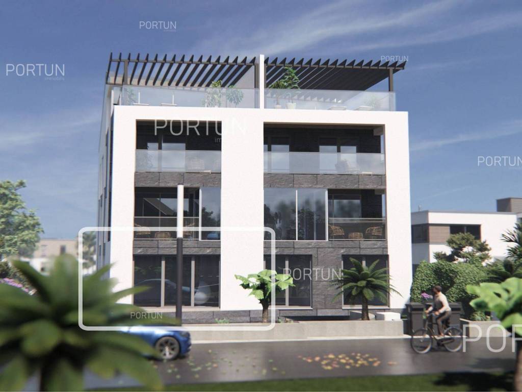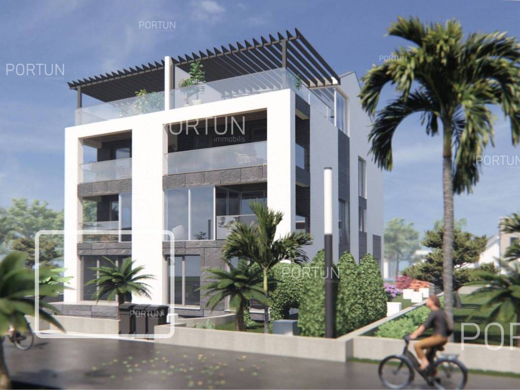 The apartment is located on the ground floor of a modern building that will be ready for occupancy in 2025. The building consists of six apartments and is characterized by a modern design with large glass openings, and is equipped with an elevator connecting the basement, ground floor and two above-ground floors. The apartment has a functional layout that includes a spacious living room with kitchen and dining room, two bedrooms, bathroom, additional toilet, hallway, boiler room and laundry room. The apartment also comes with an underground garage for one vehicle, as well as its own storage room. Underfloor heating connected to a heat pump and a combined hot water boiler are used for heating and cooling. The joinery is made of PVC with double glazing, while the entrance door and interior doors have a minimalist design. The apartment is located in an excellent location, in a quiet part of Rovinj, not far from the center and close to the beach, which makes it an ideal choice for housing or tourist rental. For more information, contact our team!. LocationIstria represents an ideal combination of crystal clear sea, hills and valleys, playful rivers and waterfalls, sun-drenched vineyards and numerous historical and cultural sights. Known as the pearl of the Istrian peninsula, Rovinj is the champion of Croatian tourism, teeming with life in the summer and peace in the winter, colored by the magical colors of the sunset and the charming old town center enriched with Venetian architecture. Excellent residential area in Rovinj, where the apartment is situated, is rich in various amenities:Sea | Beach 300 m Services | Food store 300 m - Cafe or bar 290 m - Inn or restaurant 140 m - Elementary School 2,2 km - Health center 2,5 km - Pharmacy 2,7 km - Marina 230 m Sports and fun | Volleyball court 1,2 km - Basketball court 1,2 km - Forrestal park Punta Corrente 4 km Traffic | Pula Airport 41 km Attractions | Special ornithological reserve Palud 11 km LayoutThe entrance to the building is on the ground floor, just like the entrance to the apartment. The spacious apartment with a modern layout, with 104 square meters features a living room with a kitchen and a dining room, two bedrooms, one bathroom, one toilet, one hallway, one boiler room and one laundry room. Parking spaces and particles Garage for one car 18,70 m2 Storage space 4,32 m2About the buildingThe apartment is located in a building that stretches through basement, ground floor, two above-ground floors and attic. The entrance to the building is on the ground floor level, from the northwest side, and vertical communication takes place via an internal staircase and an elevator. The basic architectural characteristics of this modern building are: 6 Flats External walls | Styrofoam insulation + Block brick wall Concrete slab floors Roof | Pitched roof covered with clay tiles Targeted energy performance certificate A+ Construction began in 2023 | Construction is underwayEquipmentJoinery | PVC joinery with double glazing - Aluminum entry door - Minimalist interior doorsHeating and cooling | Underfloor heating - Heat pumps - Combined water boilerFlooring | Top quality ceramic tiles - ParquetOutdoor spaceEquipment | Automatic irrigationFences | HedgeServices Connection to the power grid with its own meter Private connection to the water supply network Planned connection to the sewage network Paved public access roadDocumentationExtracted documents | Building permit - Main projectArea calculationThe area of the apartment (104,37 m2) includes the areas of these spaces:Living area (Ground floor) = 90,41 m2 x 1,00 = 90,41 m2Garage (Basement) = 18,70 m2 x 0,50 = 9,35 m2Storage space (Basement) = 4,32 m2 x 0,50 = 2,16 m2Garden (Ground floor) = 24,50 m2 x 0,10 = 2,45 m2Data source = Main project