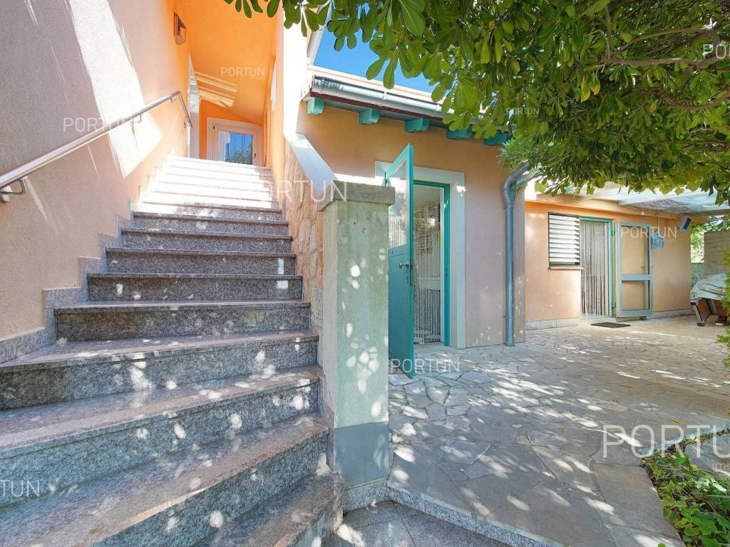 Surrounded by a quiet neighborhood, this house stands out with a lush garden, an olive grove with about twenty old olive trees and a swimming pool with a retractable roof. On the ground floor of the house there are two apartments, each with one bedroom, and additional facilities such as a laundry room, two storage rooms, a garage and a covered parking space. On the first floor there is a spacious owner's apartment with two bedrooms and a large covered terrace offering panoramic views of the Kvarner Bay. The garden is a true green oasis with luxurious oleanders and old olive trees, among which there is a swimming pool. Right next to the pool is a dug-in wine cellar, perfect for storing wine or socializing in an intimate setting. The proximity to the beach, beautiful sea views, a lush garden, a covered pool and a wine cellar make this property an ideal choice for a long-term tourist season and a quick return on investment. The house is fully legal and ready for categorization, making it suitable for tourist rental. For more information, feel free to contact us!. LocationIstria - a heart-shaped peninsula immersed deep in the clear and blue waters of the Adriatic, is a hidden garden of beauty that opens the door to the sunny and warm Mediterranean. Marčana is located on a plateau above the coast in the southeast of Istria, in the embrace of untouched nature with a crystal clear sea and lush greenery in the hinterland. Completely peaceful, rural location on the east coast of Istria, not far from Marčana, where the house is positioned, offers numerous amenities:Sea | Beach 1,4 km Services | Food store 1,5 km - Cafe or bar 1,5 km - Inn or restaurant 5,5 km - Elementary School 5 km Sports and fun | Basketball court 5 km - Nature park Kamenjak 32 km Nearby towns | Barban 18 km - Pula 18 km Traffic | Highway entry Pula 16 km - Pula Airport 17 km Attractions | Outdoor museum Kažun Park 18 km About the propertyThe estate which extends to 2.000 square meters comprises: Main house | 4 Bedrooms - 4 Bathrooms - 2 Floors - 237,38 m2Auxiliary building | 1 Floor - 16,33 m2Swimming pool | 30,00 m2LayoutThe spacious house, with 237 square meters, is spread over two floors, namely the ground floor and the 1st floor. Ground floor | The entrance to the house is on the ground floor. This 159,08 m2 floor includes two apartments, a garage 40,00 m2, a laundry, 2x storage space and a canopy. First floor | External straight stairs lead to the upper level, that is to the 1st floor. This 78,30 m2 level features a two-bedroom flat, a terrace 8,00 m2, a covered terrace 12,44 m2 and a corridor. Parking spaces Parking for two cars Garage 40,00 m2About the houseThe entrance to the house is on the ground floor level, from the southeast side, and vertical communication takes place via the external staircase. The basic architectural characteristics of this completely unique house are: Floors | Ground floor + First floor Orientation | Southeast External walls | Block brick wall 20 cm Concrete slab floors Roof | Pitched roof covered with clay tiles Built approx. in 1980 Renovated 1995FurnitureFurniture | All furniture is included in the priceJoinery | Wooden joinery with double glazing - PVC joinery with double glazing - Aluminum shutters - Wooden shutters - Wooden entry door - Classic interior doorsHeating and cooling | Air conditioners (2) - Furnaces - wood (2)Flooring | Ceramic tiles - Laminate flooringOutdoor spaceEquipment | Automatic irrigation - Drip irrigationGreen areas - 20 Old olive trees - Cedar tree - Row of vinesFences | A stone wall - Concrete wallDriveway | Motor drive - Slide openingOutdoor pool Skimmer pool 30,00 m2 | Composite pool - Disinfection of water with chlorine - Pool cover Sunbathing area | Deckchairs Services Connection to the power grid Connection to the water supply network Septic tank Unpaved public access road | Distance to the paved road approx. in 200 mReal estate statusThe land is located entirely within the boundaries of the construction area. DocumentationExtracted documents | Decision on the constructed condition of the building - Architectural snapshot of the existing stateArea calculationThe area of the house (237,38 m2) includes the areas of these spaces:Living area (Ground floor + First floor) = 112,66 m2*Terrace (First floor) = 8,00 m2*Covered terrace (First floor) = 12,44 m2*Lodges (Ground floor) = 30,00 m2*Garage (Ground floor) = 54,96 m2*Storage spaces (Ground floor) = 19,32 m2**Area is given without accrued construction coefficientsData source = Architectural snapshot of the existing stateThe total land area including the footprint of the building(s) amounts to 2.000 square meters. Data source = Cadastre data