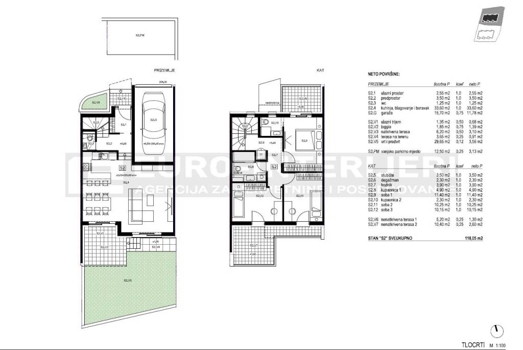 PRODAJA STANOVA ZAGREB - STENJEVEC - NOVOGRADNJA TLOCRT PRIZEMLJA S2