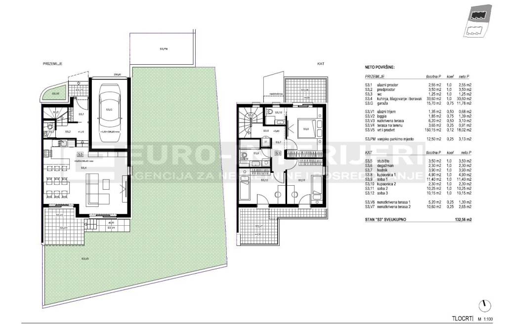PRODAJA STANOVA ZAGREB - PERJAVICA - NOVOGRADNJA TLOCRT PRIZEMLJA S3