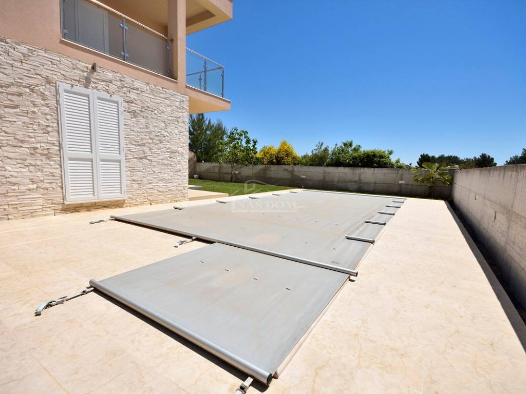 Srima, Vodice - an apartment house with a pool is for sale in a quiet location. The two-story house has a gross floor area of 359.89 m², or a gross footprint of 163.60 m², and consists of three levels: ground floor + first floor + high attic.