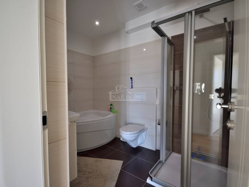 The house has a basement of 40 m² where the laundry room and boiler room for central heating with oil burner are located. The house yard of 405 m² is fenced, partially paved, and landscaped, consisting of 4 parking spaces, garden, and a pool of 30 m².