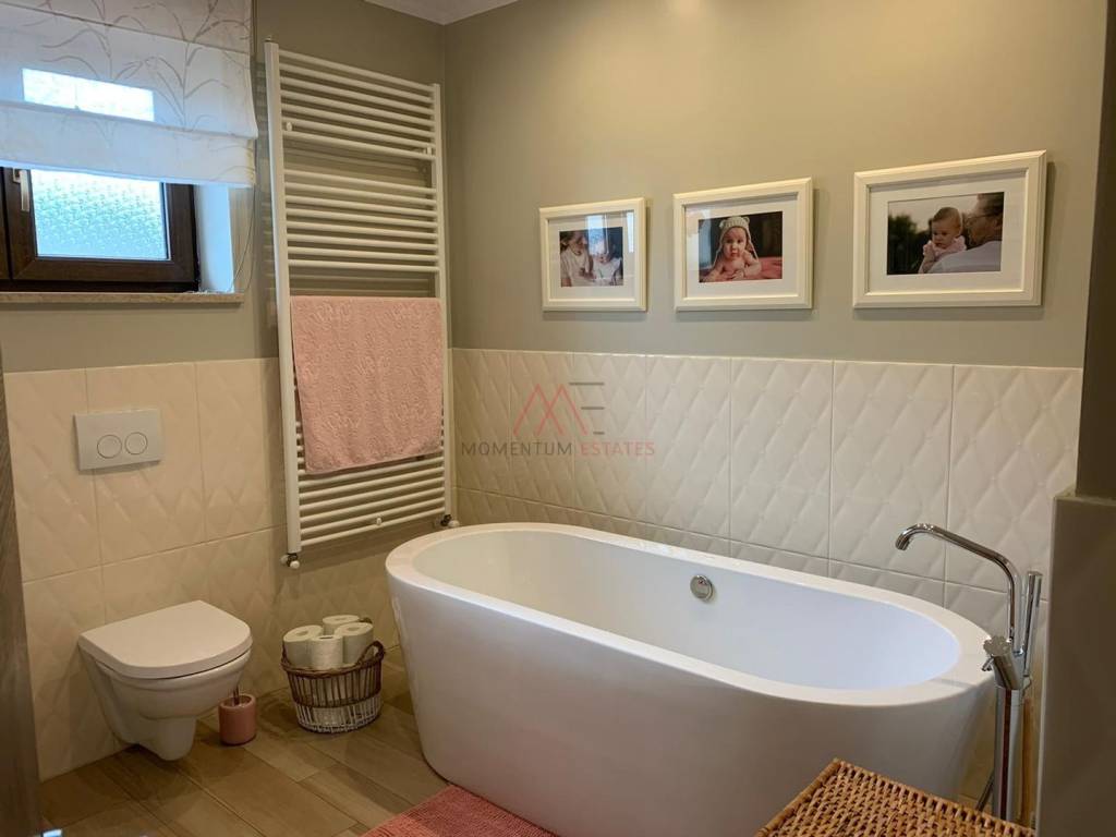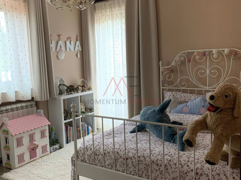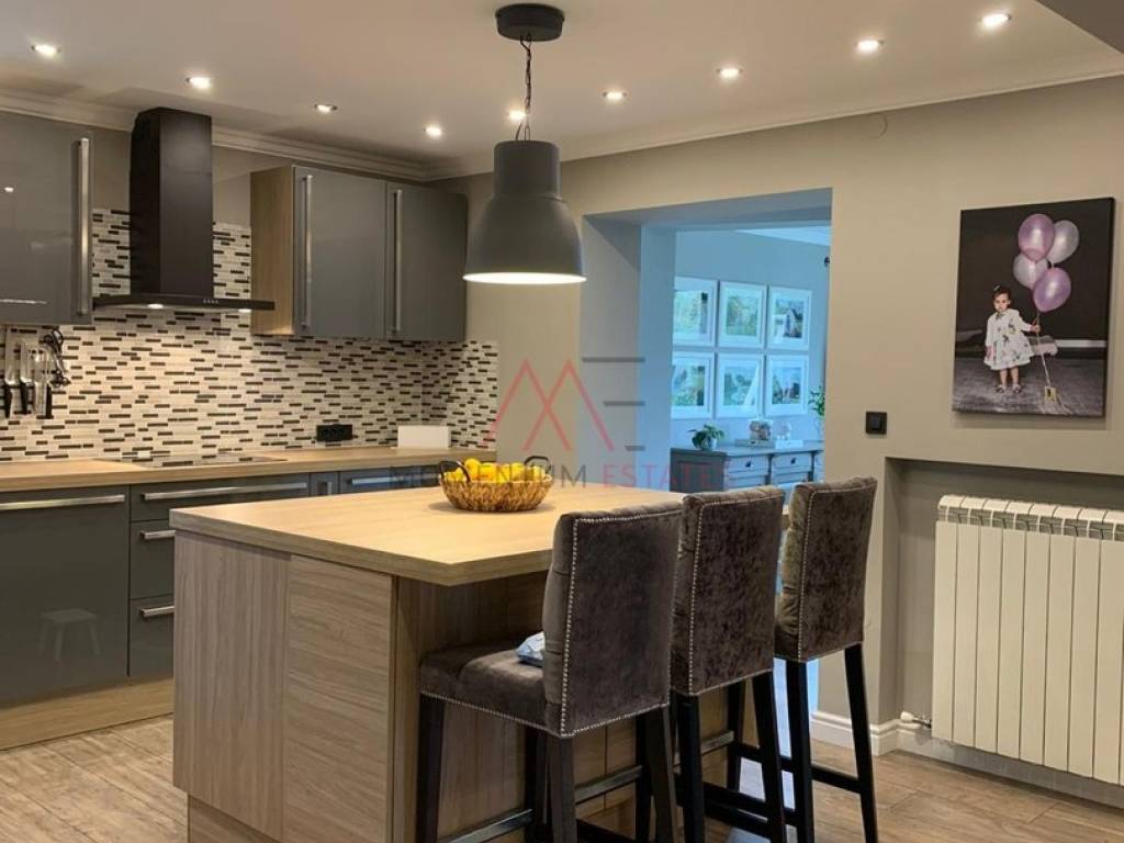 Prizemlje se sastoji od dnevnog boravka, kuhinje, odvojenoe blagovaone, ostave, WC-a za goste, ureda/sobe koja ima i zasebni ulaz direktno sa okućnice. Također u prizemlju smještena je sušiona, kotlovnica sa spremištem, garaža. Na 1. katu nalaze se 2 dječje sobe kojima pripada zajednička kupaona sa kadom. Treća soba je glavna spavaća soba koja ima walk-in ormar, te en-suite kupaonu sa tušem. Sve sobe imaju svoje balkone.