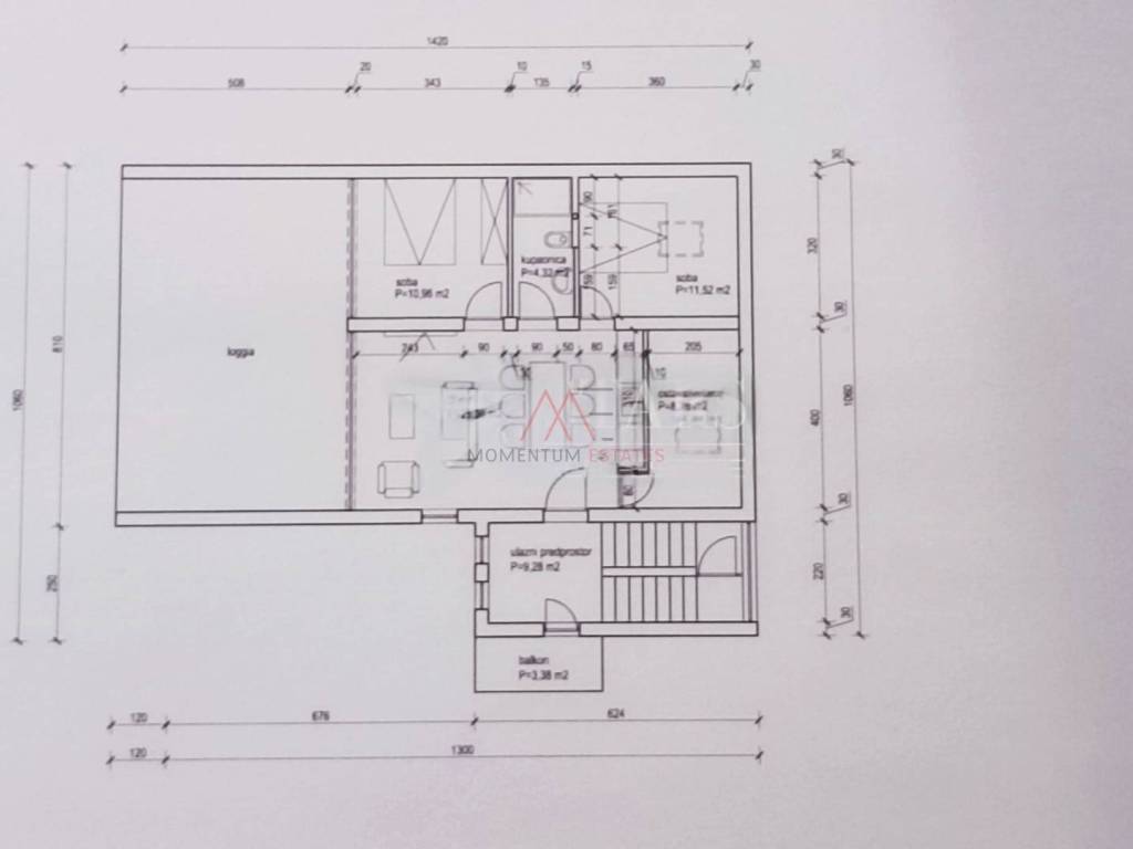 U manjoj stambenoj zgradi prodaje se stan na vrhu zgrade, Stan je trenutno u fazi adaptacije, a sastoji se od dvije sobe s dnevnim boravkom, kupaonice, prostrane terase s koje se pruža otvoreni pogled na more i okolinu. Unutarnja površina stana iznosi 69m2, terasa 27m2 i balkon 4m2. Stanu pripada jedno parkirno mjesto, te postoji mogućnost kupnje dodatnog parking mjesta. Dokumentacija uredna.