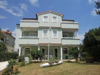 This spacious apartment house for sale in Medulin presents an excellent investment opportunity just a short walk from the coastline. Spread across three levels, the property includes 11 residential units—ten fully equipped tourist apartments and one comfortable family flat. The main building offers 523.75 m² of living space, complemented by an additional 50 m² auxiliary structure that enhances functionality and supports strong rental performance.