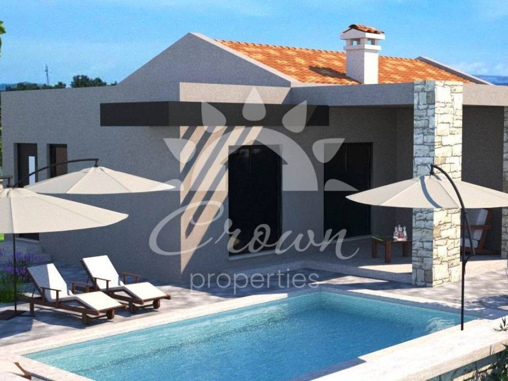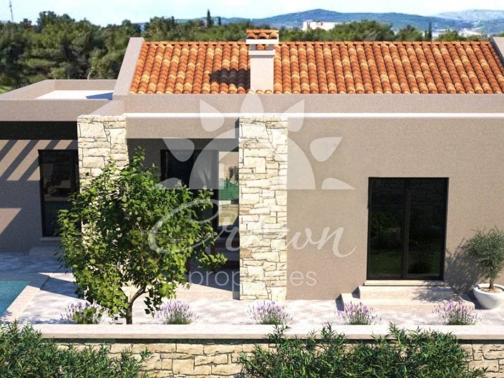 In the peaceful surroundings of Svetvinčenat, a modern ground-floor house with a pool is for sale — ideal for anyone seeking a new, high-quality home. It is located just a few minutes’ drive from the town center and is sold fully completed, on a “turn-key” basis, ready to be furnished according to the buyer’s preferences.