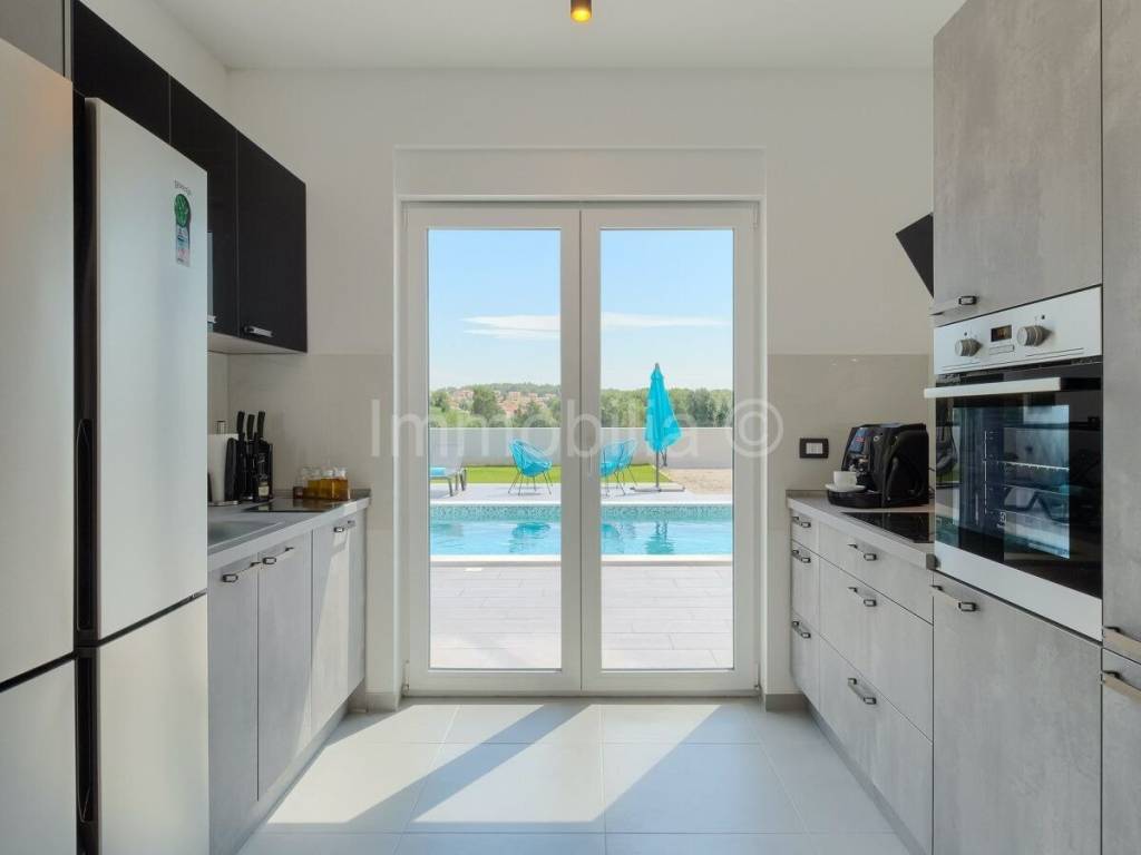 La struttura ha un design moderno, costruzione e attrezzature di qualit��, riscaldamento a pavimento, carpenteria in PVC di qualit�� con tapparelle elettriche, tutte le stanze sono climatizzate, allarme e videosorveglianza..