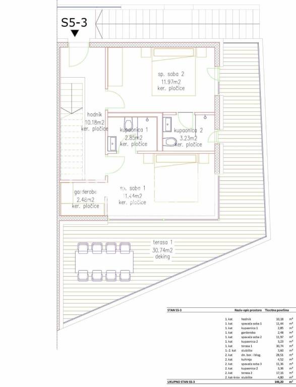 Sukošan – Luxurious modern apartment with a roof terrace of 103 m2