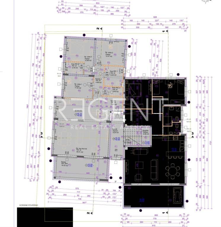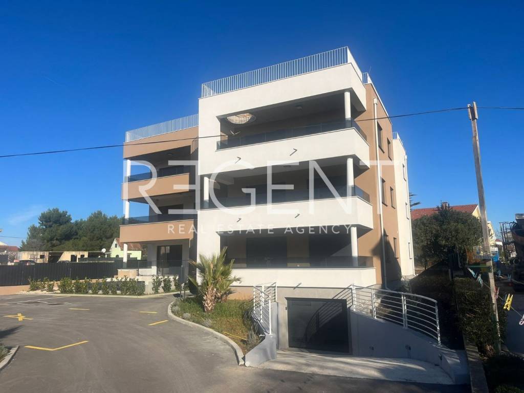 In Sukošan near Zadar, there is a luxurious residential new building consisting of 6 apartments. A luxurious penthouse with a total net usable area of 172 m2 is located on the 2nd floor of a residential new building. It consists of: hallway (9.24 m2), living room + kitchen + dining room (49.41 m2), hallway (7.46 m2), bedroom 1 (11.02 m2), hallway (4.88 m2), bathroom 1 (6.24 m2), bedroom 2 (12.47 m2), bathroom 2 (3.76 m2), bedroom 3 (12.96 m2), bathroom 3 (3 m2), terrace (19.33 m2). Located in a quiet location, only 50 meters from the crystal clear sea and a beautiful beach, this building offers an ideal combination of peace and proximity to all necessary amenities. All apartments have a sea view! EQUIPMENT: Regarding equipment, it should be emphasized high-quality aluminum sliding walls, PVC windows and blinds equipped with electric lifters. Additional comfort is provided by Mitsubishi heat pumps, in addition to which one air conditioner is installed in each room to ensure the highest level of comfort according to individual preferences. There is a possibility of installing a fireplace if desired, with a chimney provided. The floor coverings in the bathrooms and toilet are tiles, and in other rooms finished parquet. Thermal insulation is styrofoam 10cm thick. The building contains a garage, each apartment has 2 garage parking spaces with the possibility of buying an additional outdoor parking space. Contact us for more information!