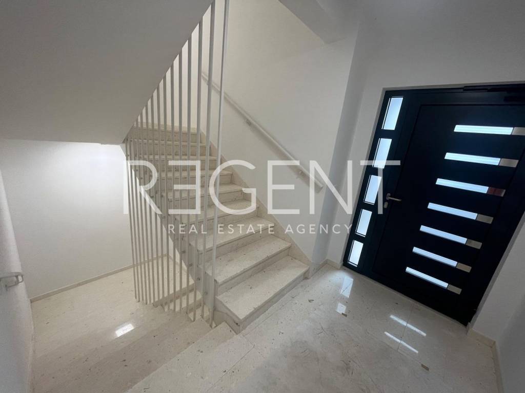 In Sukošan, not far from Zadar, there is a luxury residential building consisting of 6 apartments, 5 of which are available. A luxurious three-room apartment with a total net usable area of 110.97 m2 is located on the 1st floor of a new residential building. It consists of: hallway (11.31 m2), living room + kitchen + dining room (43.39 m2), bedroom 1 (13.37 m2), hallway (2.73 m2), bathroom 1 (5.13 m2), WC (2.99 m2), bedroom 2 (12.23 m2), terrace (11.07 m2). Located in a quiet location, only 50 meters from the crystal clear sea and beautiful beach, this building offers an ideal combination of peace and proximity to all necessary amenities. All apartments have a sea view! EQUIPMENT: Of the equipment, it is important to emphasize the high-quality aluminum sliding walls, PVC windows and blinds equipped with electric lifters. Additional comfort is provided by Mitsubishi heat pumps, in addition to which one air conditioner is installed in each room, in order to ensure the highest level of comfort according to individual preferences. There is a possibility of installing a fireplace if desired, with a chimney provided. The floor coverings in the bathrooms and toilet are tiles, and finished parquet in the other rooms. Thermal insulation styrofoam 10cm thick. The building contains a garage, each apartment has 2 garage parking spaces with the possibility of buying an additional outdoor parking space. Contact us for more information!