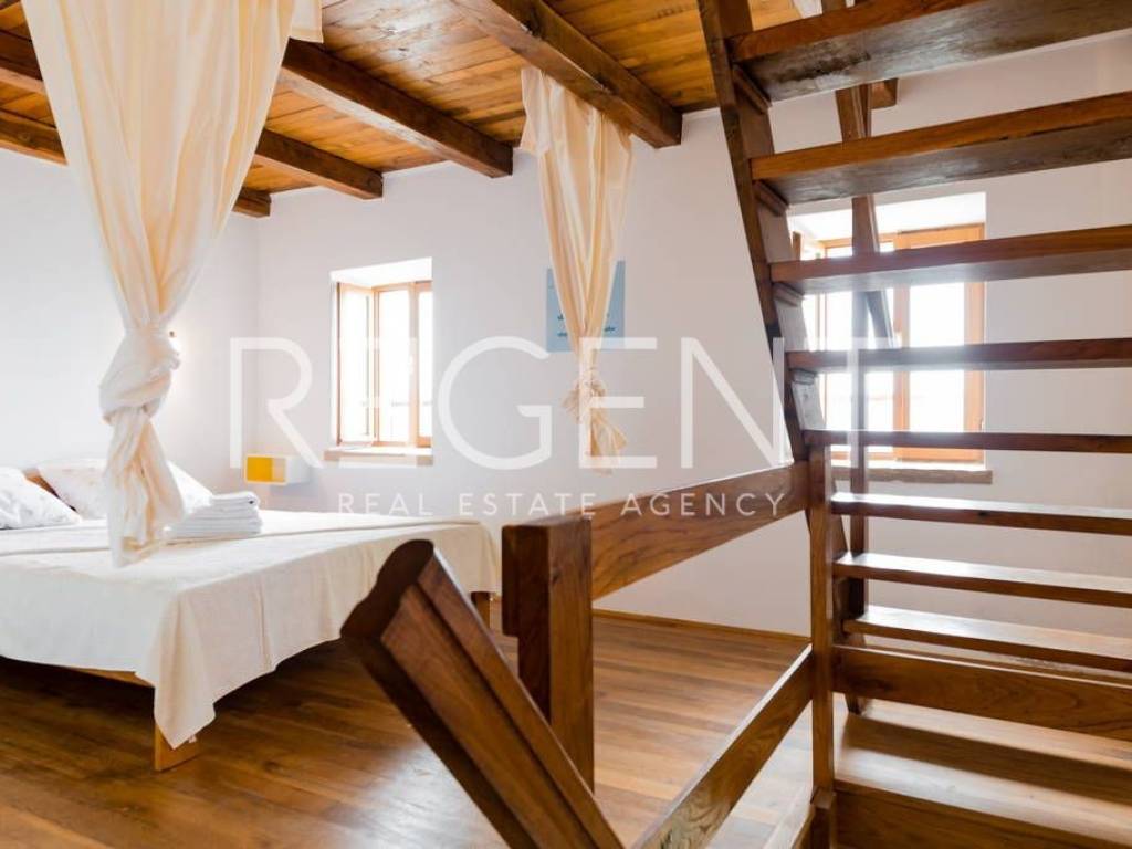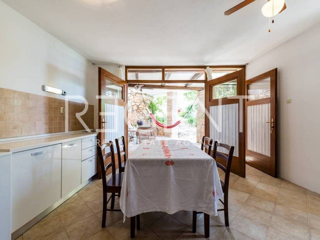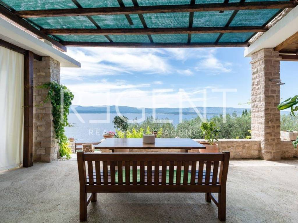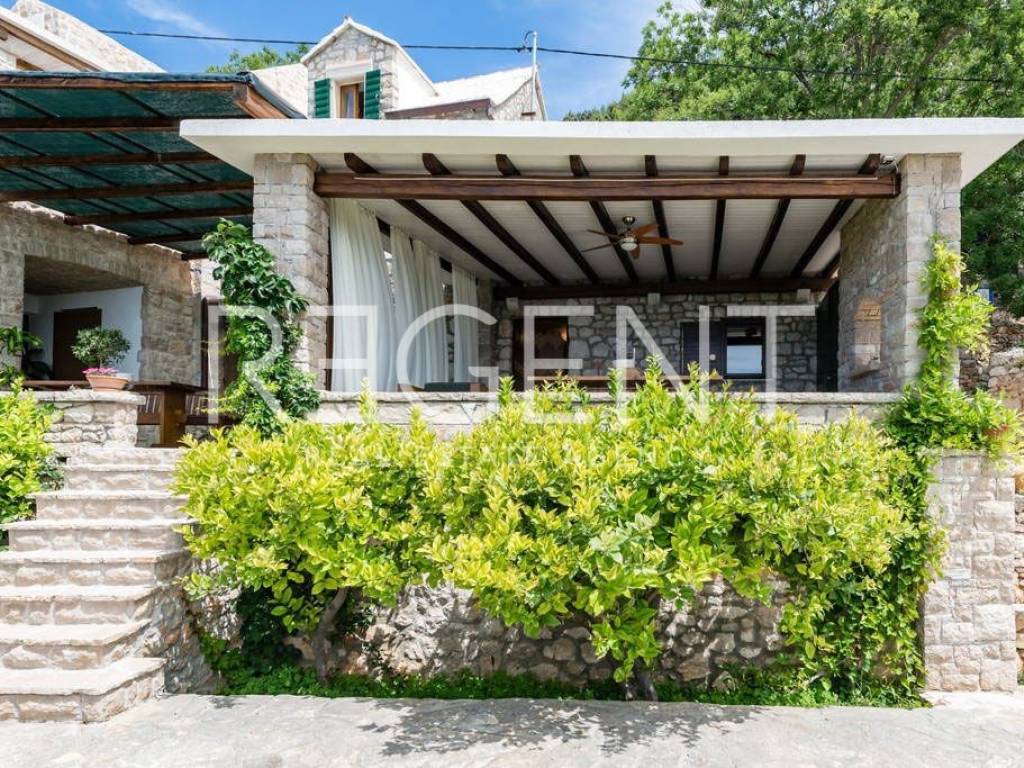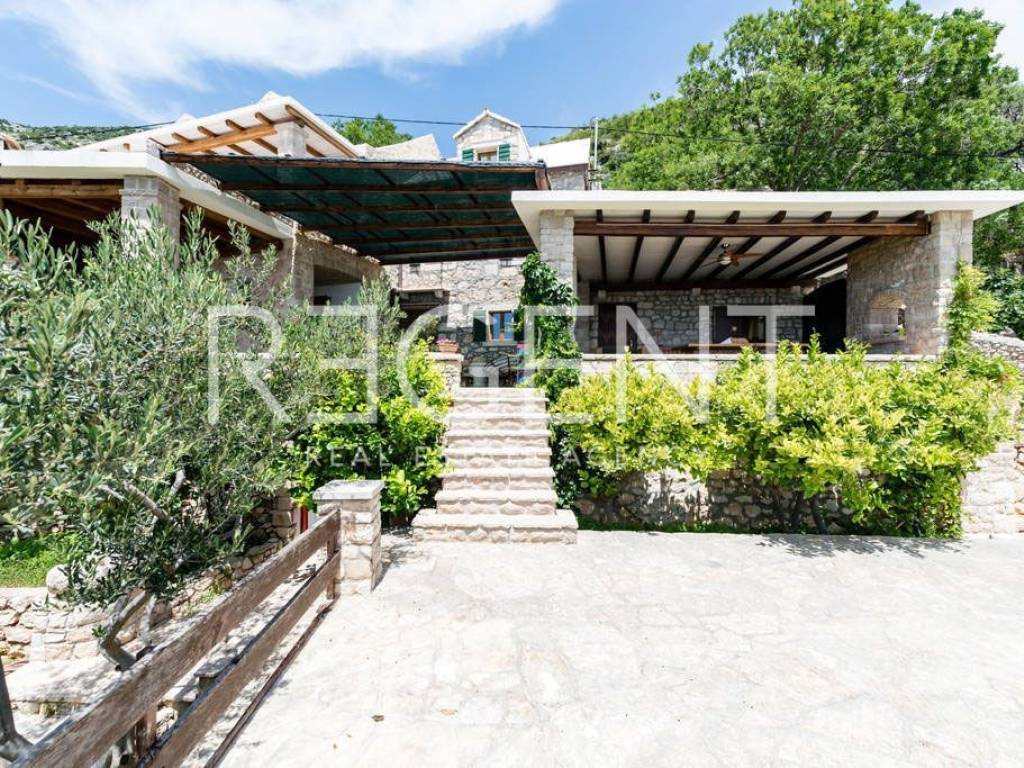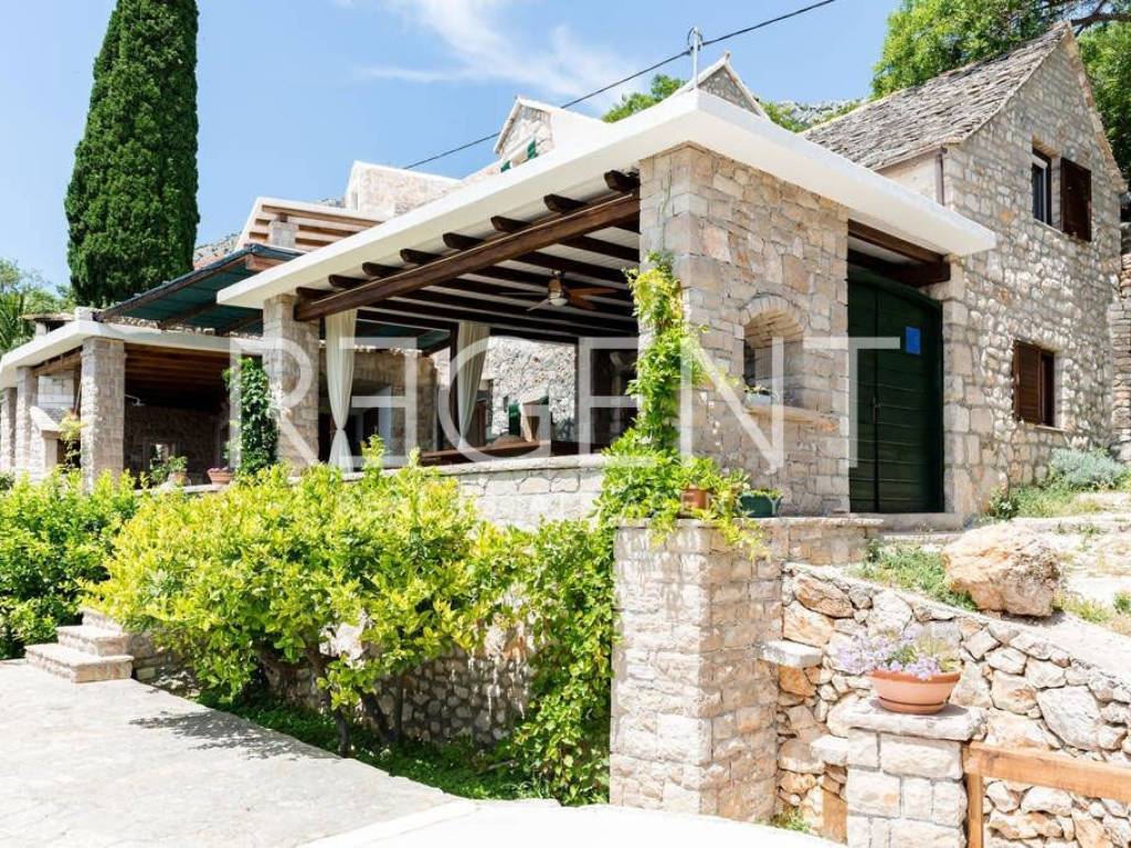 In the authentic Dalmatian village of Murvica, on the south side of the island of Brač, lies a charming stone house with four separate apartments. Situated just six kilometers from the famous Bol, in a quiet settlement by the sea, this property offers a unique combination of traditional architecture and a pleasant interior. It is a house built in the authentic Brač style, with thick stone walls, wooden carpentry, and a stone-covered roof, which contributes to the authentic island atmosphere and natural protection from the sun and heat. The interior is decorated with special attention – a combination of ceramic, stone, and oak floors creates a warm and pleasant ambiance, and all apartments are air-conditioned and fully equipped, ready for use without additional investment. Each residential unit has its own terrace with a beautiful view of the sea, islands, and surrounding greenery. The first apartment is ideal for a couple with one bedroom, a kitchen, a dining room, a bathroom, and a spacious terrace that offers complete privacy and an open view of the sea. The second apartment, the largest in the house, is adapted for up to five people and consists of two bedrooms, a bathroom, a kitchen, and a dining room, and its large terrace further emphasizes the feeling of freedom and connection with nature. The third apartment is designed for four people, with one bedroom and an extra bed in the living room, a bathroom, while its terrace provides a peaceful retreat for relaxation with the scent of pine trees and a view of the sea. The fourth apartment is the smallest, but very functional, perfect for two or three people looking for a more intimate space. It consists of a bedroom, a kitchen, a bathroom, and a pleasant terrace overlooking the vineyards and the sea. Within the house, there is also a large shared terrace with a barbecue, which is an added value for family gatherings and evening gatherings outdoors. The location of the house offers peace and quiet, and nearby there are numerous sights such as the Dragon's Cave and medieval monasteries. The sea is only a few minutes' walk away, and access is possible by a paved road from Bol. Thanks to regular ferry lines from Supetar and catamaran from Bol, the connection with the mainland is very good. This property represents a rare opportunity to purchase a house with multiple units in one of the most beautiful locations on Brač – it is ideal for personal vacations, a peaceful family life, or as an investment in tourist rental with proven potential. For more information and to arrange a viewing, feel free to contact us!