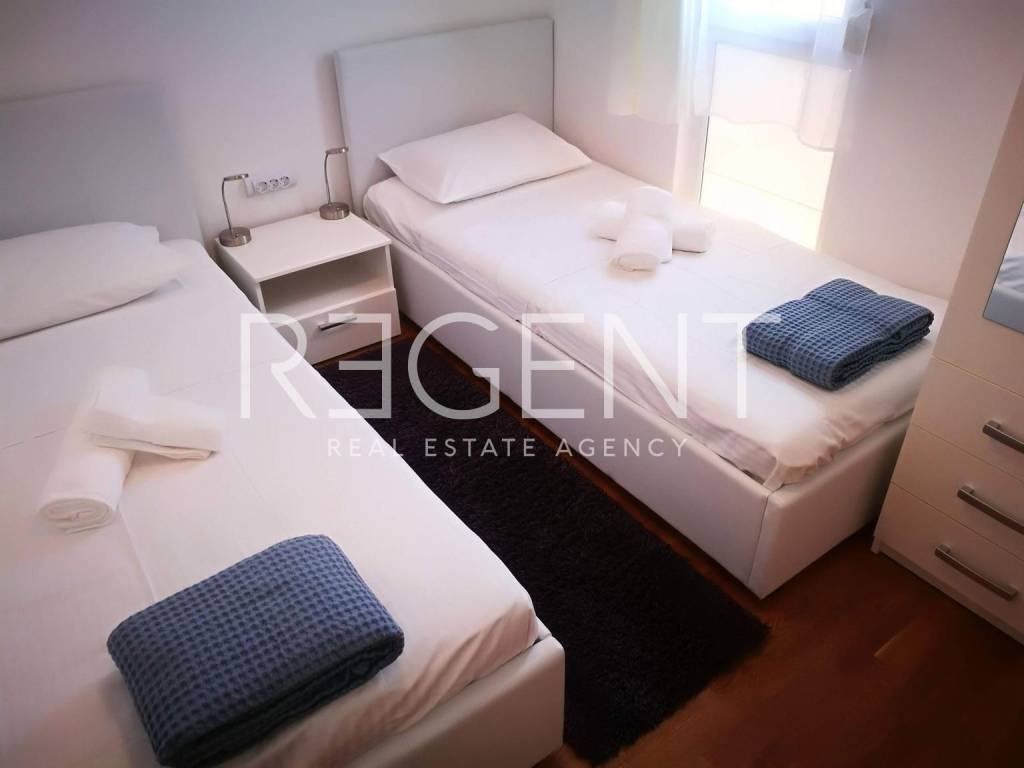 Apartment for sale in a modern residential building with an elevator in the Split neighborhood of Žnjan. Fully equipped and furnished apartment with a spacious loggia and an open view of the sea and islands. Located on the 2nd floor, the apartment with a total area of 74.65 m² has an extremely functional layout that includes an entrance hall, an open-space living area with a kitchen, dining room, and living room, two bedrooms, a guest toilet, and a main bathroom. From the living area, you can access the loggia, which provides a sense of privacy and an unobstructed view of the sea. The apartment is exceptionally bright thanks to the large glass walls, and it is air-conditioned in all rooms. The floors are a combination of quality ceramics and parquet, and the property is sold fully equipped, without the need for additional investments. The apartment is categorized for tourist rental and already achieves excellent occupancy during the season and pre-season, which makes it an ideal choice for those looking for a property with investment potential. The location is also suitable for family life – all important facilities such as the beach, schools, shops, restaurants, and cafes are available within a few minutes' walk. A garage space with an area of is also for sale with the apartment, which is accessed directly by the elevator from the building. The ownership is in order, the property is registered, and moving in is possible immediately. Purchase is possible in cash or via a loan. The price of the apartment is 795,000 EUR, while the price of the garage is 65,000 EUR. For additional information and to arrange a viewing, feel free to contact us!