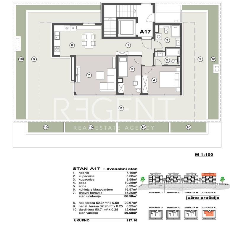 The offer is a two-bedroom apartment with a total area of 75.79 m² located on the ground floor of a new residential complex in a quiet location in Pazdigrad. It is intended for families, couples, and investors looking for a quality and functional home. The location offers excellent transport links to the city center, business zones, and public transport. There are schools, kindergartens, shops, and sports facilities nearby, and a quiet street guarantees a safe and pleasant life. The apartment comprises a hallway, a toilet, a bathroom, two bedrooms, a kitchen with dining area, and a living room. Additional outdoor space includes a covered and uncovered garden, ideal for relaxation and family activities. It is possible to purchase a parking space at a price of 2,000 EUR/m² and a storage room at a price of 2,200 EUR/m². The planned start of construction is by the end of the year. The project offers high-quality materials, energy efficiency, and modern heating and cooling systems. The purchase is without agency commission, with VAT included, and the possibility of financing. For additional information and viewing, please feel free to contact us.