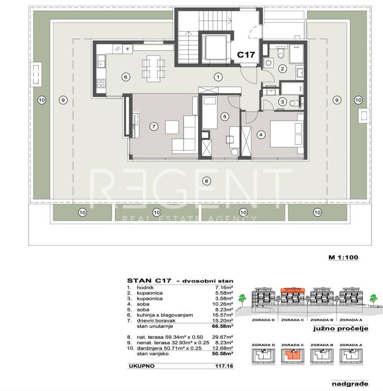 The offer is a two-bedroom apartment with a total area of 75.79 m² located on the ground floor of a new residential complex in a quiet location in Pazdigrad. It is intended for families, couples, and investors looking for a quality and functional home. The location offers excellent transport links to the city center, business zones, and public transport. There are schools, kindergartens, shops, and sports facilities nearby, and a quiet street guarantees a safe and pleasant life. The apartment comprises a hallway, a toilet, a bathroom, two bedrooms, a kitchen with dining area, and a living room. Additional outdoor space includes a covered and uncovered garden, ideal for relaxation and family activities. It is possible to purchase a parking space at a price of 2,000 EUR/m² and a storage room at a price of 2,200 EUR/m². The planned start of construction is by the end of the year. The project offers high-quality materials, energy efficiency, and modern heating and cooling systems. The purchase is without agency commission, with VAT included, and the possibility of financing. For additional information and viewing, please feel free to contact us.