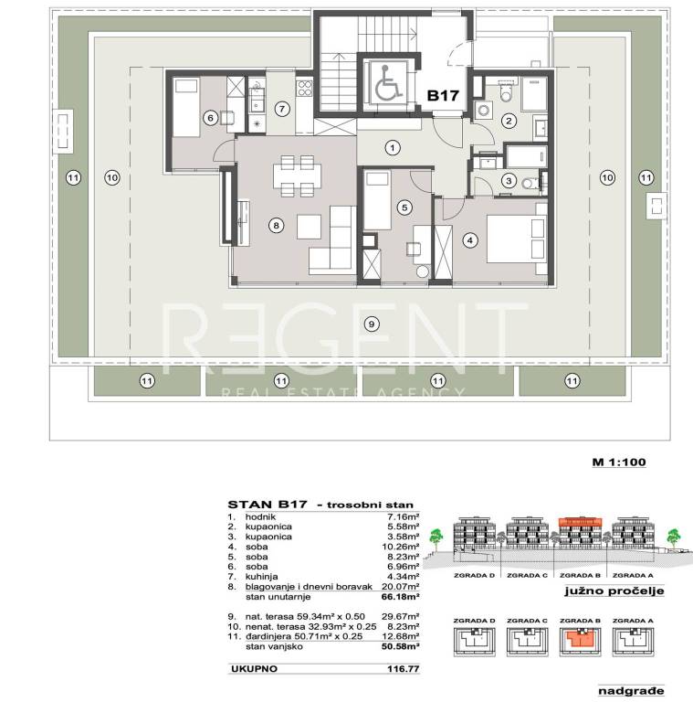 The offer is a two-bedroom apartment with a total area of 75.79 m² located on the ground floor of a new residential complex in a quiet location in Pazdigrad. It is intended for families, couples, and investors looking for a quality and functional home. The location offers excellent transport links to the city center, business zones, and public transport. There are schools, kindergartens, shops, and sports facilities nearby, and a quiet street guarantees a safe and pleasant life. The apartment comprises a hallway, a toilet, a bathroom, two bedrooms, a kitchen with dining area, and a living room. Additional outdoor space includes a covered and uncovered garden, ideal for relaxation and family activities. It is possible to purchase a parking space at a price of 2,000 EUR/m² and a storage room at a price of 2,200 EUR/m². The planned start of construction is by the end of the year. The project offers high-quality materials, energy efficiency, and modern heating and cooling systems. The purchase is without agency commission, with VAT included, and the possibility of financing. For additional information and viewing, please feel free to contact us.