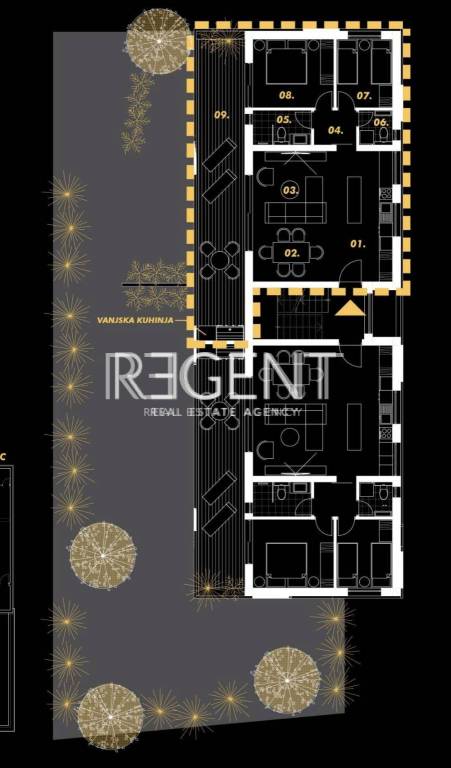 Luxurious residential new construction located in a quiet location in the vicinity of Umag, only a 5-minute drive from the center of Umag and 2.5 km from beautiful beaches. The residential new building consists of a total of 6 apartments. The apartment is located on the 1st floor, the total area of the apartment is 81.80 m2. It consists of: kitchen with anteroom (11.60 m2), dining room (10.92 m2), living room (13.44 m2), anteroom (3.23 m2), bathroom (4.42 m2), toilet/laundry room (2.55 m2), bedroom 1 (7.63 m2), bedroom 2 (10.98 m2), terrace (13.35 m2), storage room (3.68 m2). The apartment has 1 parking space with the possibility of surcharge for another. EQUIPMENT OF APARTMENTS: The apartments are built from high-quality building materials – 25 cm thick phoroterm brick and a facade with 10 cm thick thermal insulation. The external carpentry will be high-quality multi-chamber PVC carpentry in anthracite color with electric shutters. Each room within the apartment will have a heating and cooling system whose working properties ensure maximum comfort and economy, and if desired, floor heating can be installed at an additional cost during the construction phase. The price of the apartment includes VAT, and it is sold on a turnkey basis, which includes a completely decorated and ready-to-move-in property without furniture. The planned completion of the works is autumn 2025. Due to its exceptional location and content, this property is an excellent opportunity as an investment for tourism or for year-round living. Location: The center of Umag is a 5-minute easy drive away, where there are beautiful beaches, promenades, restaurants, cafes, bicycle paths, shops, etc. For more information, please contact us!