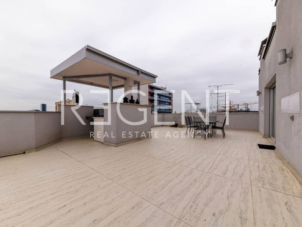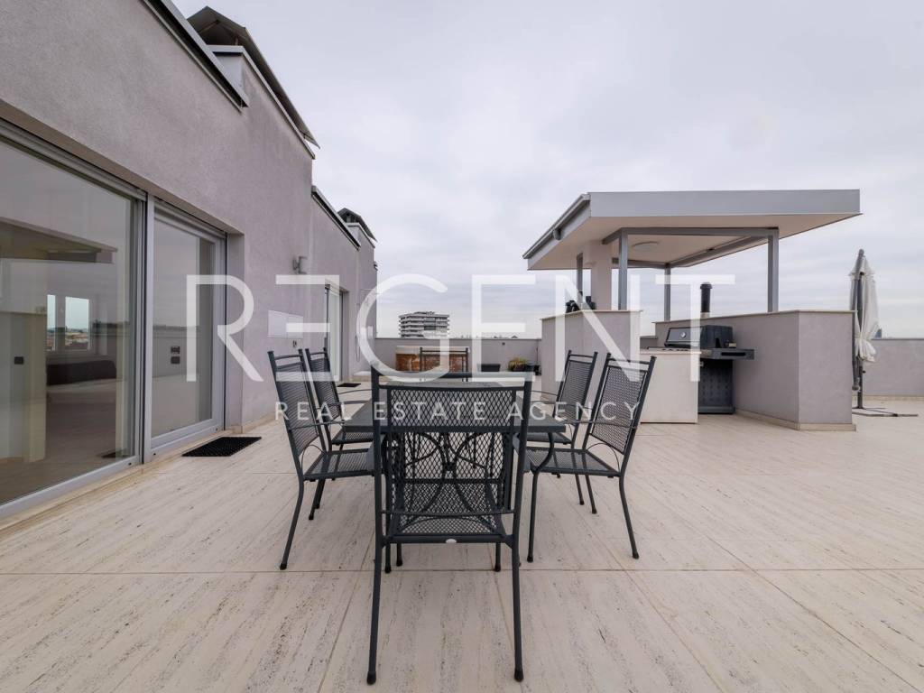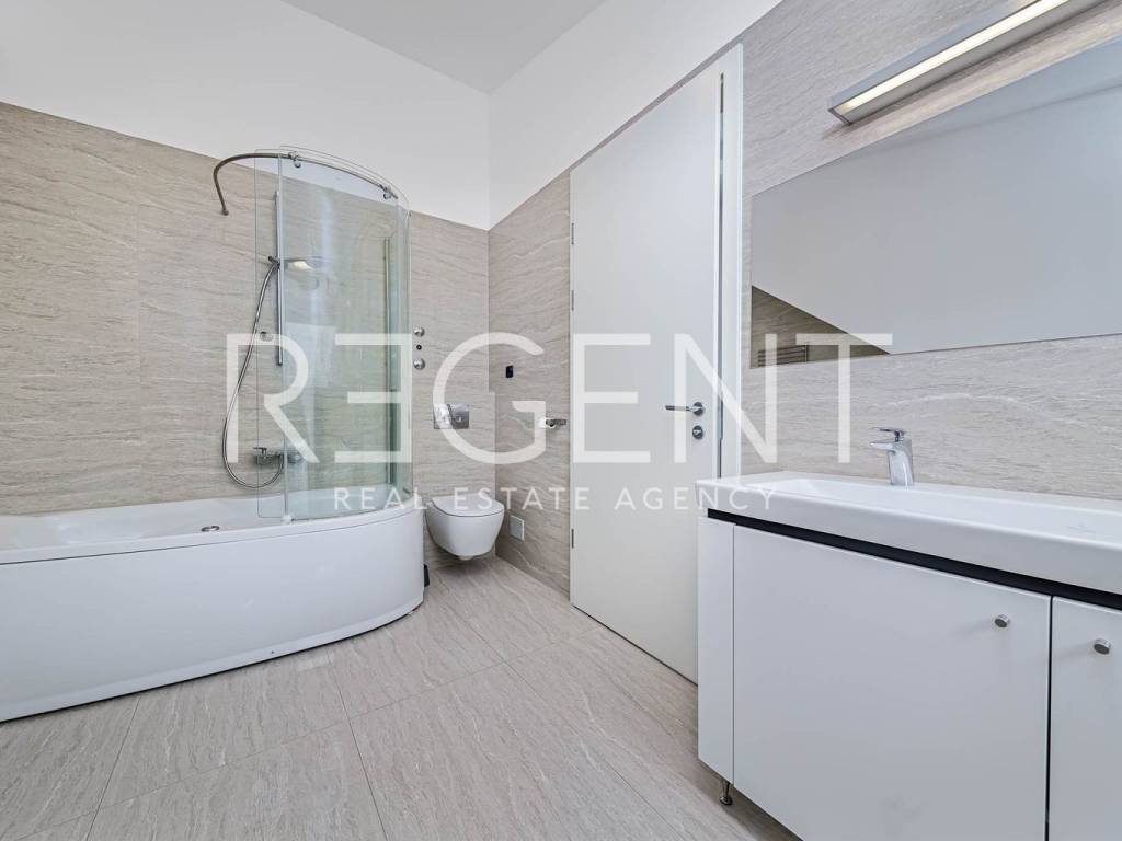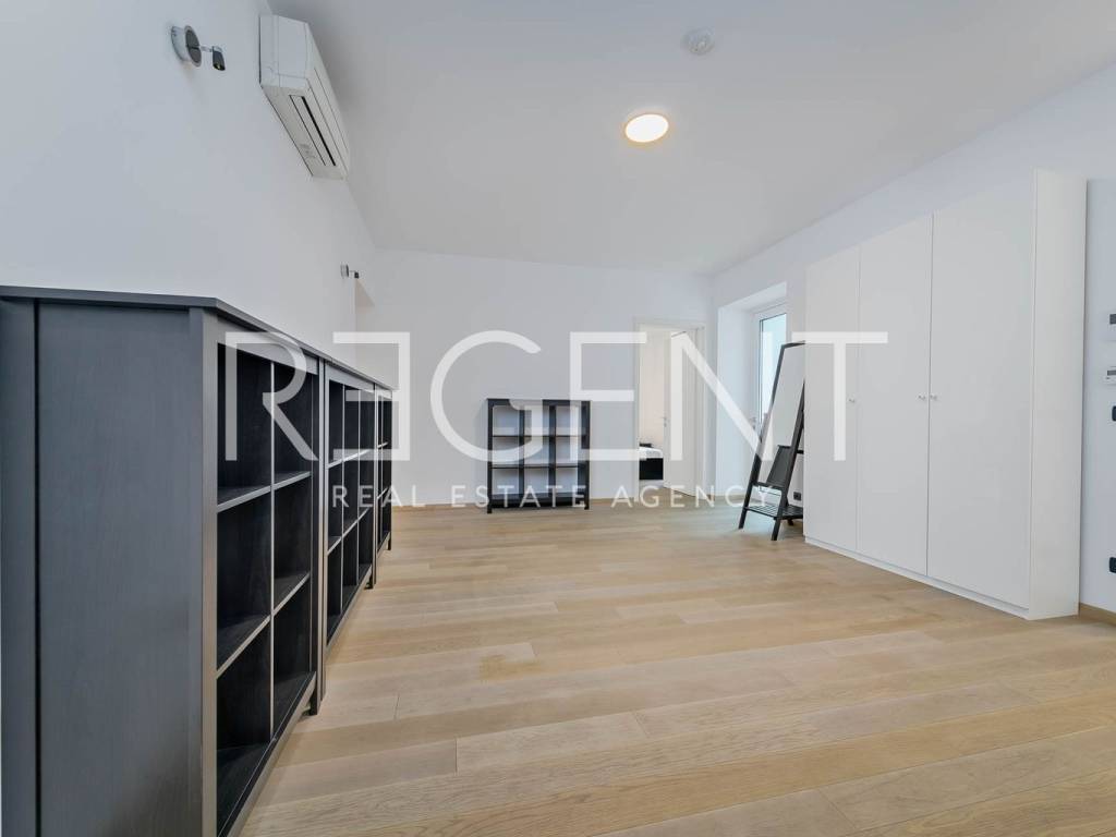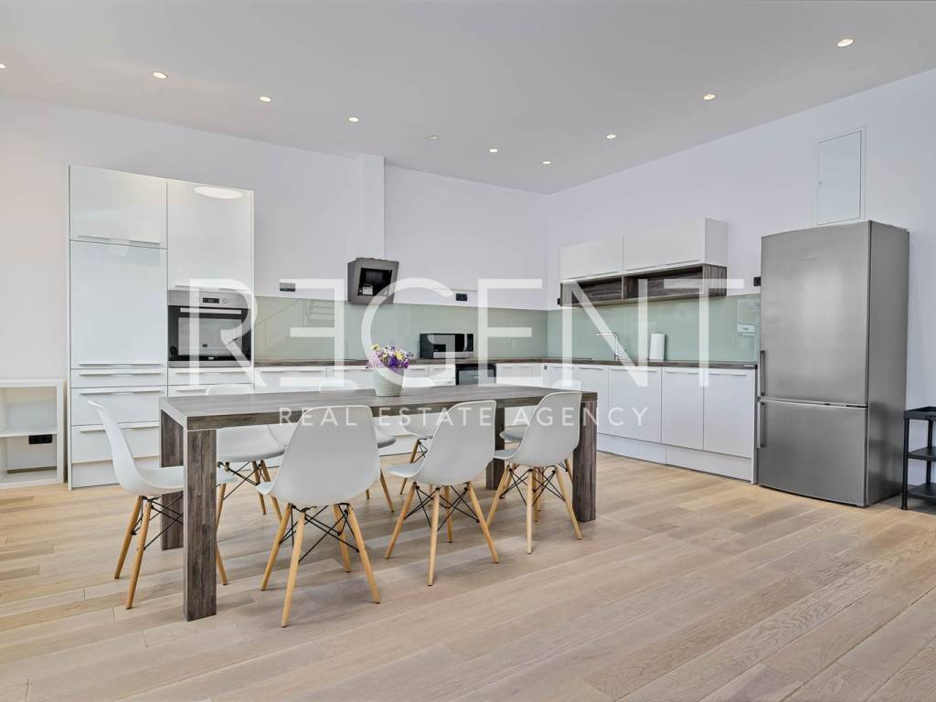 Near the city center on the 5th floor of a building with a private elevator, there is a luxurious four-room two-story penthouse with a net usable area of 225 m². The apartment was completely renovated in 2015, with a top-quality adaptation that includes the replacement of all installations (electricity, water, gas), installation of a concrete slab, three-layer PVC windows, oak parquet, designer radiators and a fireplace in the living room. The lower floor contains a comfortable entrance area, two bedrooms, two bathrooms, a separate utility room, a guest toilet and a spacious living room connected to the kitchen and dining room, creating an open space ideal for socializing and relaxing. The upper floor is reserved for the master bedroom with its own wardrobe and bathroom, while a special experience is provided on a large terrace of 106 m². The terrace is equipped with an outdoor kitchen, outdoor shower and a large jacuzzi, ideal for relaxing and enjoying privacy. The apartment also has two storage rooms - one of 4.82 m² and the other of 21.32 m², and it has a parking space in the yard of the building. In the immediate vicinity there is the Kvatrić market, shops, schools, health center, public transport and a hospital, which makes this property great for living in the center. For all additional information, feel free to contact us.