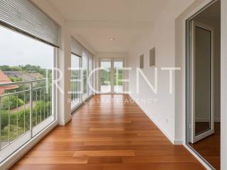 A luxurious three-room penthouse of 143 m² located on the second floor of a newer two-story building in a quiet part of Orehovečki Brijeg. The spacious living areas offer a charming view of the Dotrščina forest park and Sljeme mountain, ideal for nature lovers and urban privacy. The apartment consists of a spacious living room with a dining room in an open concept, a fully equipped kitchen with modern built-in elements, three bedrooms large enough for a family or working from home, a special dressing room for additional organization, and a luxurious bathroom with a jacuzzi positioned to allow panoramic views. The apartment has central gas heating and air conditioning in all rooms. The PVC joinery is three-layer, and the floor coverings are parquet and ceramic tiles of top quality finish. The building has video surveillance and an intercom. Additional details: – Two parking spaces in a closed garage – Storage room in the basement of the building – 2 spacious closed terraces with panoramic views and seating area The penthouse is located in the Orehovečki Brijeg settlement, a part of Gornja Dubrava known for its greenery and peace. The Dotrščina forest park is right in front of the building, and Sljeme is about a 20-minute drive away. Nearby are a tram stop and bus lines, while a kindergarten, elementary school, supermarkets and a pharmacy are available within a few minutes' walk. For more information or to arrange a viewing, please contact us.