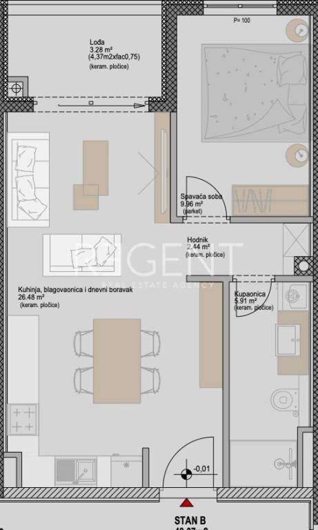 A two-room apartment is located on the ground floor of a contemporary residential project in the quiet Finida North neighborhood, a few minutes from the sea and the historic center of Poreč. The functional layout and loggia make it an excellent choice for couples, smaller families, or as a summer residence. The total net area of the apartment is 48.07 m², and it consists of a hallway, a bathroom, a kitchen with a dining area and living room, a bedroom, and a loggia. It is equipped with underfloor heating, air conditioning, and PVC joinery with triple-layer glass, mosquito nets, and motorized blinds. The flooring is ceramic and parquet, and the space is bright and pleasant. The building is under construction, and the completion of works is scheduled for July 1, 2026. Moving in is possible after the occupancy permit. The price of the apartment on the ground floor is €4,950 per m², and payment is possible in construction phases with flexible terms. For more information, a catalog of apartments, or to arrange a viewing - feel free to contact us.