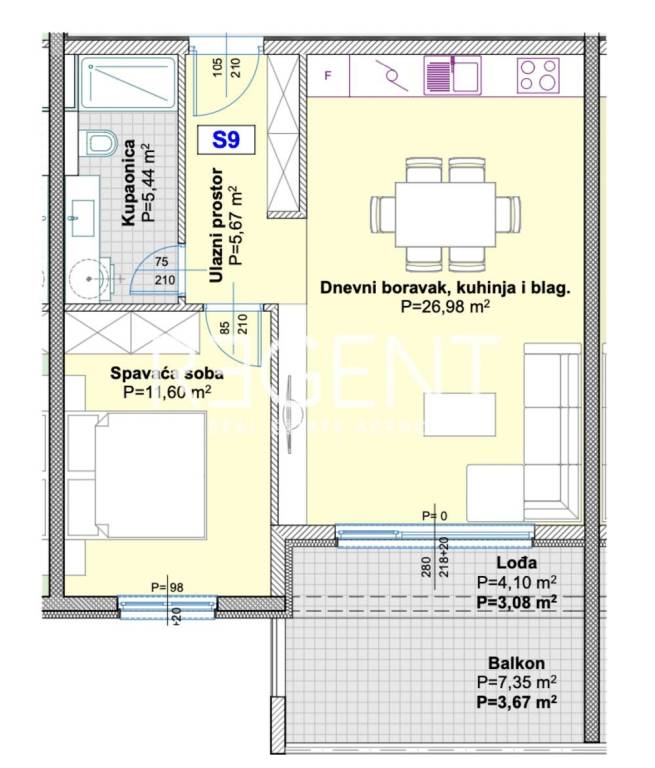 We are mediating the sale of a one-bedroom apartment in a new building, which is located in an excellent location in beautiful Makarska. The apartment is located on the first floor of the building and contains an open space area of 26.98 m2, which includes a living room, kitchen and dining room with access to a loggia of 3.7 m2 and a balcony of 3.67 m2, a bedroom of 11.60 m2, a bathroom of 5.44 m2 and a hallway with an entrance area of 5.67 m2. The equipment of the apartments meets the highest standards, including a reinforced concrete structure with earthquake-resistant foundations, energy efficiency to the highest standards and top-quality aluminum carpentry. The building is equipped with an elevator, while all windows and doors are made of high-quality PVC, equipped with thermal and sound insulation, which guarantees an energy-efficient and quiet environment. The bathrooms are equipped with sanitary equipment and 1st class tiles, which further emphasizes the luxurious impression of the space. It is possible to purchase a garage parking space with the apartment at a price of 1600 euros per m2, an outdoor parking space at a price of 10,000 euros and a storage room at a price of 5,000 euros. This apartment is an ideal investment for future tourist activity due to its proximity to beaches, the city square, schools, kindergartens and shops, as well as for a peaceful life for couples and families not far from the city. For all other inquiries, feel free to contact us!