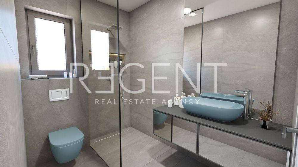 We are mediating the sale of a two-room apartment in Kaštela, which is located in the superstructure of a residential building under construction. The total area of ​​the apartment is 134.72 m2. It contains 79.15 m2 of internal space and the corresponding part of the total area of ​​55.57 m2. The interior includes: staircase with a total area of ​​4.25 m2 entrance area with a total area of ​​8.18 m2, two bedrooms with a total area of ​​14.39 m2 and 12.27 m2, living room and dining room with a total area of ​​24.28 m2, kitchen with a total area of ​​8.31 m2, two bathrooms with a total area of ​​4.23 m2 and 3.24 m2, The corresponding part includes: two terraces (covered and uncovered terrace) with a total area of ​​11.61 m2 and 25.23 m2 storage room with a total area of ​​3.00 m2, two garage parking spaces 8.45 m2 and 7.28 m2. The property is located in a residential complex consisting of 10 buildings with 70 apartments. Each building will have 7 apartments, two on the ground floor, two on the first floor, two on the second floor and one in the superstructure. Thanks to the gently cascading terrain on the micro-location, the largest number of apartments will have a sea view, while all other apartments will have large private green oases and gardens. The equipment of the apartments meets the highest standards, using the highest quality steel and concrete materials in quantities and quality above the required anti-seismic standards and norms, including reinforced concrete construction with anti-seismic foundations, thermal insulation, energy efficiency according to the highest standards, top quality PVC carpentry. Italian ceramics and sanitary ware, as well as top quality parquet floors, further emphasize the luxurious impression of the space. All apartments will be equipped with SMART HOME digital WIFI start-up of lighting, air conditioning and heating, burglar alarm systems and sun protection systems. In addition, the mentioned settlement will also integrate the latest horticultural achievements. Due to its location in the immediate vicinity of the school, kindergarten, shops and the main road, the apartment offers all the amenities needed for everyday life. For more information, feel free to contact us!
