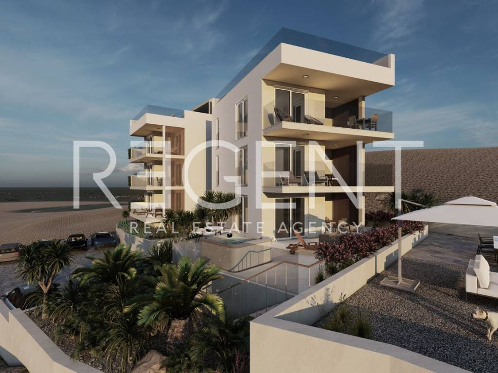 Three-room apartment located on the ground floor of a modern residential building in a quiet and attractive location in Okrug Gornji. The property is ideal for family life, but also as a long-term investment. The apartment has a total net usable area of 92.84 m², and consists of a hallway, two bedrooms, a bathroom, a living room with a kitchen and dining room, a covered and uncovered terrace, and two gardens that provide additional space for relaxation and enjoyment outdoors. Equipment and additional benefits: High-quality large-format tiles Electric shutters Large ALU fixed built-in walls at floor level Underfloor heating in the bathroom Daikin air conditioners in every room PVC windows with high-quality insulation properties Interior doors without visible frames Large format ceramics Jacuzzi The residential building is located in a quiet part of Okrug Gornji, close to the sea, nature and all necessary amenities, while the city center is easily accessible. An outdoor parking space is included in the price. The building is in the final stage of construction, and is ready for occupancy from the beginning of next year. The documentation is in order, and purchase is possible in phases. For additional information or to arrange a viewing, feel free to contact us.