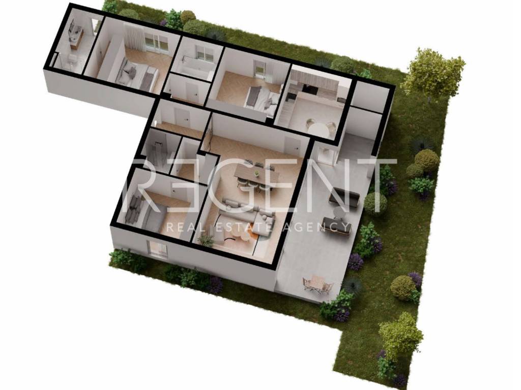 Located in one of the most prestigious locations in Split is the Villa Mareterra project, a modern new building designed for comfortable and safe living. Living in Meje means prestige, privacy and immediate proximity to the sea, Marjan and the city center, and it is this combination of peace and practicality that makes this location perfect for families, couples and individuals who are looking for more than an apartment – they want long-term value and a luxurious lifestyle. The Mate apartment is located on the high ground floor and covers a total of 177.95 m², of which 130.87 m² is the interior, and 47.08 m² is the terrace and associated garden. The layout is designed to provide maximum comfort and functionality – a spacious living room with a dining area and access to the terrace, a modern kitchen with a pantry, three bedrooms and three bathrooms. The private garden and large terrace allow you to enjoy the peaceful surroundings and greenery, which makes the apartment particularly attractive. The quality of construction and equipment is visible in every detail: heat pump with underfloor heating, multi-split air conditioning system with remote control, Schüco aluminum joinery with electric shutters, first-class parquet and ceramics, interior doors with hidden doorframes and sanitary equipment of premium level. The apartment also includes a storage room in the basement, while the garage spaces are equipped with charging connections for electric vehicles. The building is designed as a detached building with two underground garage floors, a ground floor, three floors and a penthouse, and has a total of only eight residential units, which further ensures privacy and peace. Each unit has its own terrace, and the layout of the apartments ensures optimal orientation and plenty of natural light. Completion of works is planned within 30 months from the start of construction, and moving in after obtaining a use permit. The method of payment is provided in phases – 30% upon signing the preliminary contract, 40% after the completion of the construction and 30% after the completion of the facade, with the possibility of an agreement with the buyer. The Mate apartment is an ideal choice for anyone looking for a luxurious and spacious home with a private garden in the heart of Split, in a location that never loses value. For all additional information, as well as an appointment to view the property, feel free to contact us.