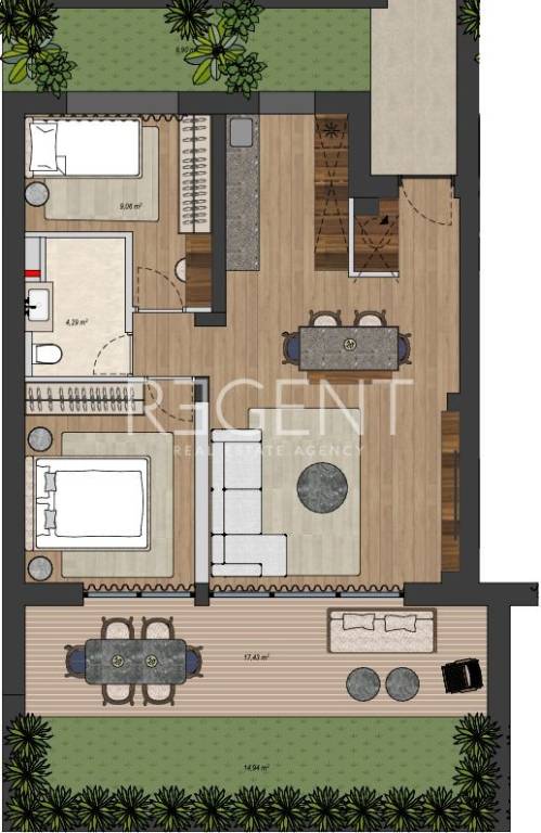 Zagreb, Remete – Luxurious penthouse with a roof terrace and panoramic views, 214 m² An exclusive penthouse is located in a peaceful location in Remete, in a modern new building of high standard. Situated in greenery with a view of the city, this spacious apartment provides complete privacy and comfort, while being close to all important amenities. The apartment comprises 135 m² of interior space, thoughtfully distributed over two floors. On the lower level, there is a spacious living room with a kitchen and dining area (56.19 m²), three bedrooms – a master bedroom (18.63 m²) with its own bathroom (8.17 m²), two additional rooms (15.48 m² and 13.49 m²), a second bathroom (6.03 m²), a hallway (13.53 m²), and a laundry room (3.49 m²). The living area is connected to a loggia and spacious terraces that offer a unique view. Outdoor spaces include a loggia (14.32 m²), a covered terrace (62.62 m²), an uncovered terrace (35.53 m²), and a roof terrace of an impressive 113.82 m², ideal for a private lounge, jacuzzi, or outdoor kitchen. The total calculated area of the apartment is 214.38 m². The apartment is equipped with underfloor heating, PVC joinery with triple-pane glass and electric blinds, Filomuro doors flush with the wall, and Galeković brushed oak parquet in Smoke or Iron tones. The bathrooms are decorated with Iris Ceramica (Victorian Stone) ceramics and GLOBO Ceramica sanitary ware, with Zucchetti Pan mixers in a brushed nickel finish and TECE Velvet push plates in matte white. The building has an elevator and a parking space, and the common areas are decorated with decorative brick, anthracite aluminum details, and horticulture with ambient lighting. The project is located at Barutanski jarak 157 Street, in the northeastern part of Zagreb, surrounded by greenery and peace, while also being well-connected to the city center. In the immediate vicinity are a school, kindergarten, shops, public transport, and walkways towards Sljeme. For more information or to arrange a viewing