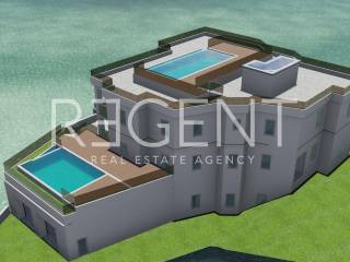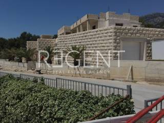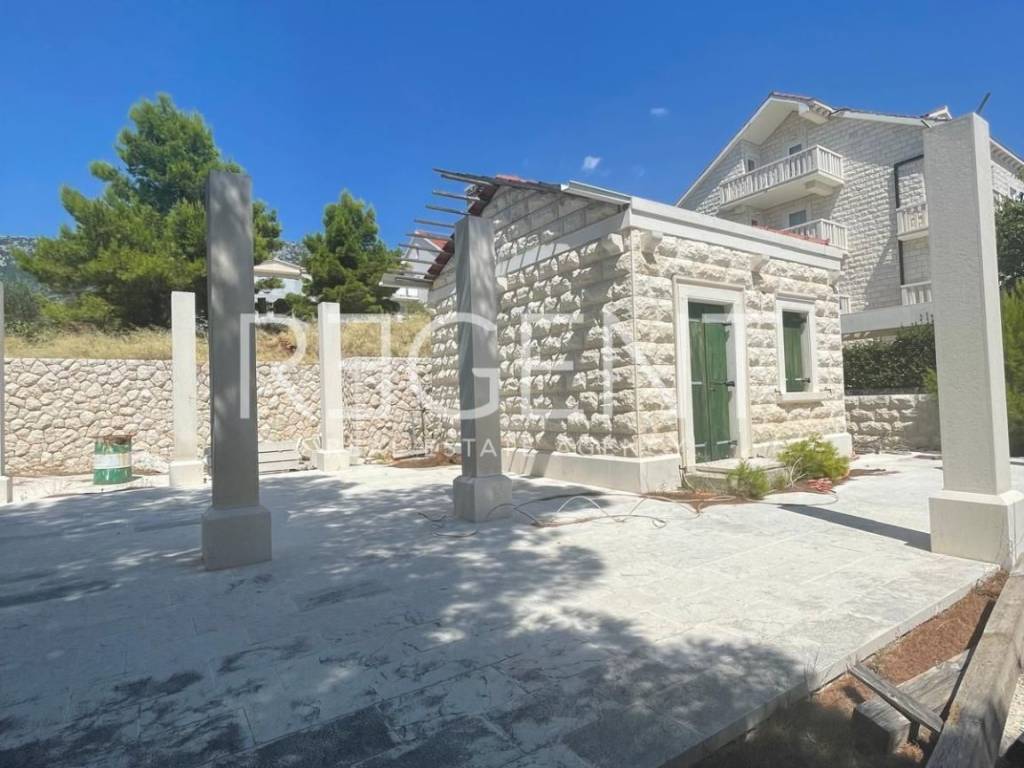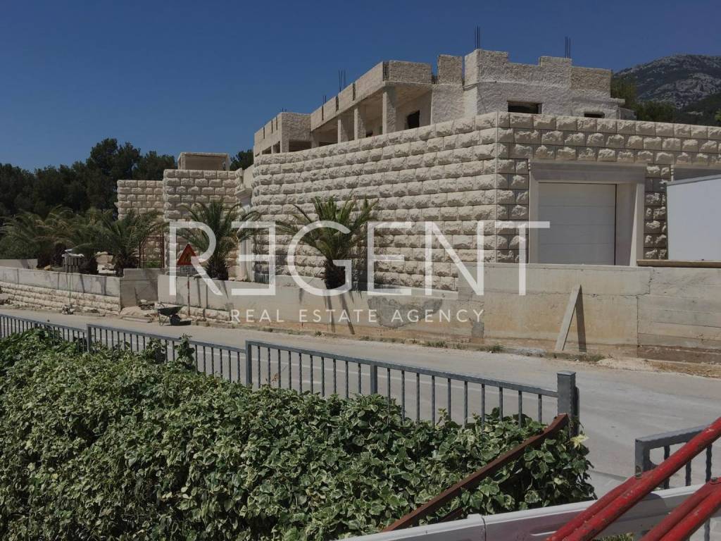 We present to you an extraordinary construction object in an excellent location in Bol on the island of Brač. On 1827 m2 of land next to the main road between hotels not far from the center and 300 meters from the sea, a low ground floor, a high ground floor and a started first floor of a detached building with an external floor plan length and width of 37.53 x 31.06 m (1451.33 m2) was built. the ground floor of which is covered with Brač stone. The plot has car access from the south side and planned parking space for 6 vehicles. In the basement floor with a height of 4.40 m, business premises are planned at three large entrances with stone frames, a garage space for 7 vehicles and auxiliary spaces for tourist facilities and pool equipment. The living space on the ground floor has access from the street and the basement to an open terrace on the south side with a view of the sea and the island of Hvar. The auxiliary building of 26.44 m2 is fully completed, and two conceptual projects have been created for the completion of the main building: LUXURY VILLA WITH TWO SEPARATE LIVING SPACES, each with its own entrance, garages and swimming pool. On the first floor – a four-room apartment with spacious bedrooms overlooking the sea, kitchen, dining room, large living room and terrace with a swimming pool, the entrance is from the main road. The apartment also includes the northern part of the garden and an auxiliary building of 26m2, a summer kitchen and a garage for 3 vehicles and spaces in the basement: a fitness room, sauna, cinema hall, wine cellar and laundry room and space for outdoor parking on the eastern side of the building. On the second floor – a four-room apartment with spacious bedrooms overlooking the sea, kitchen, dining room, large living room and roof terrace with a swimming pool with a beautiful view of the sea, Zlatni rat beach and the island of Hvar. A separate entrance is from the north side. This apartment also includes part of the garden, a garage for 3 vehicles and spaces in the basement – a fitness room, sauna, cinema hall, wine cellar and laundry room and space for outdoor parking on the western side of the building. BOUTIQUE HOTEL with 13 rooms, two swimming pools and a restaurant, spa area, sauna, cinema hall, game rooms, wine cellar, laundry room, sanitary facilities and space for pool equipment in the basement. The villa is located next to the main road, close to all necessary facilities, only 300 m from the sea, so it provides an ideal balance between privacy and natural beauty. Ownership is 1/1, which further secures your investment. Since the property is under construction, the buyer has the option of completing the decoration in accordance with his own wishes and needs, which allows complete adaptation to the space. This property represents great potential for creating a future home, but it is also an exceptional opportunity for investment in tourism. Take this opportunity and contact us today!