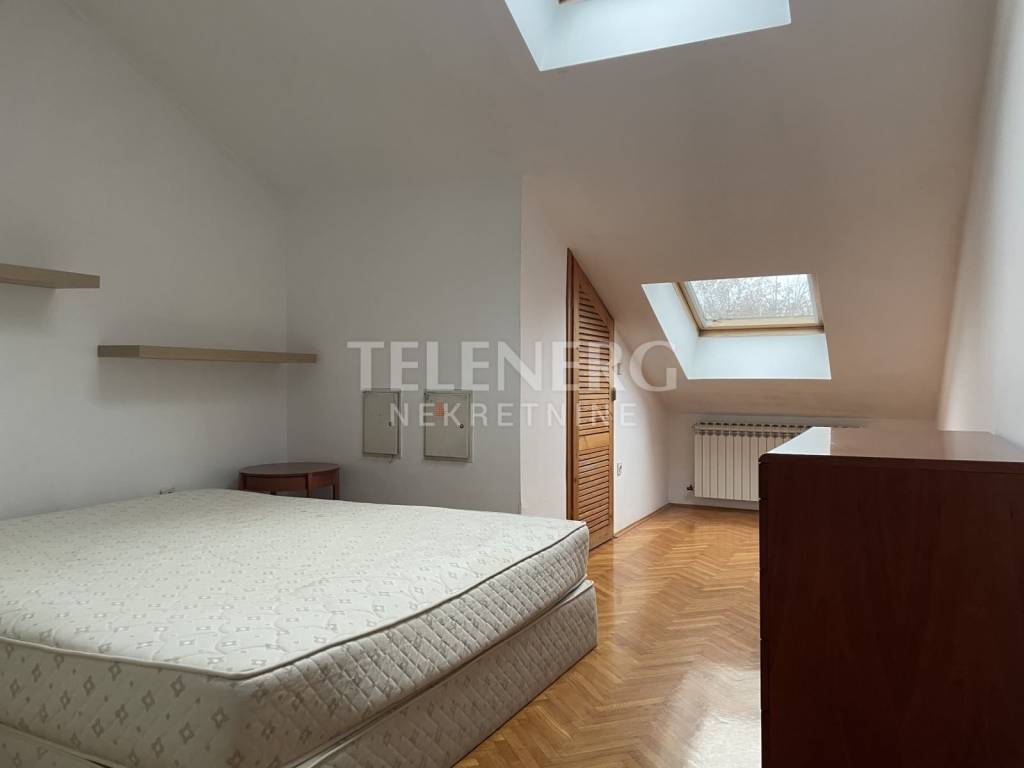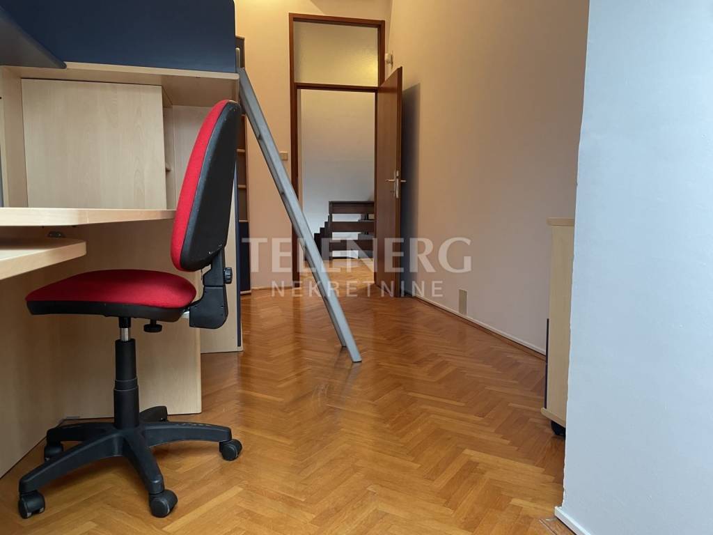 Two bedrooms and a study in the gallery on the first floor with a view of Maksimir Forest. Smaller bathroom.