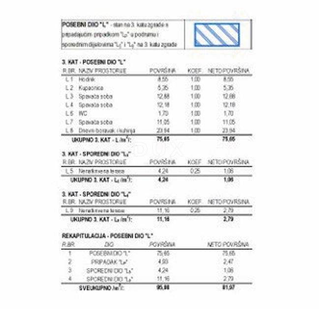 In the heart of the Poreč area, there is a spacious and carefully decorated apartment on the third floor, with a total area of 85 m and a usable area of 96 m.