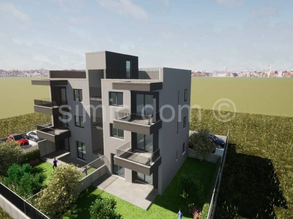 A new apartment located in a smaller building near Trogir, for sale in the Plano area. Apartment S1 is placed on the ground floor and has a total internal area of 53.25 m2 and an additional 16.92 m2 of paved terrace, 63 m2 of garden, and an outdoor parking space included in the price. With all accessories included, the apartment has a total net area of 65.43 m2. It consists of a hallway, two bedrooms, a bathroom, and a kitchen with a dining room and a living room with access to a paved terrace and garden. The apartments will be excellently equipped: underfloor heating will be installed throughout the apartment, external and internal insulation, mosquito nets, electric shutters, an air conditioning system, with the buyer being able to participate in the selection of ceramics and bathroom equipment. The planned completion of the building is spring 2027. The location of the building is excellent, on a quiet street, while the nearest amenities such as shops, cafes and pharmacies are only a 2-minute walk away, and the center of Trogir is about 4.5km away.