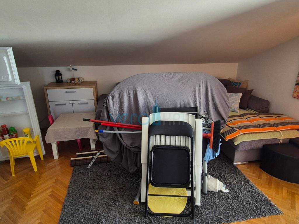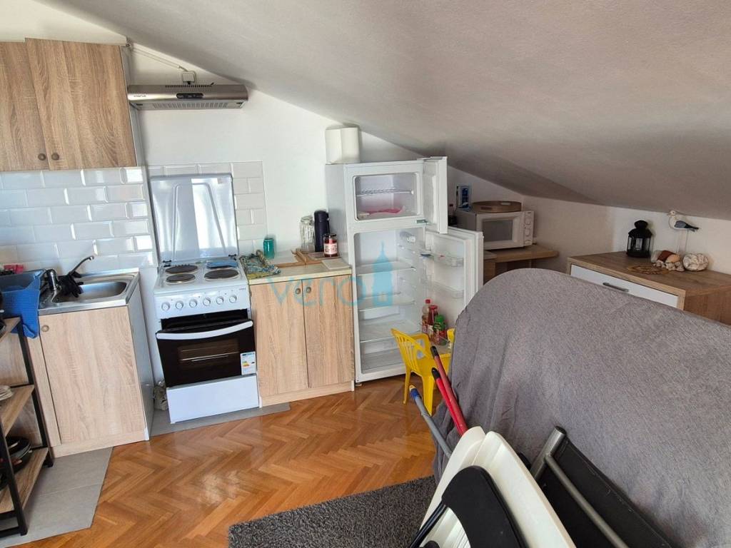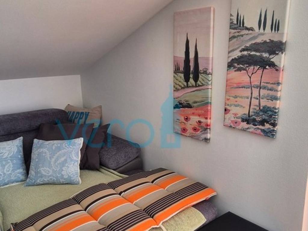 Stan ukupne površine 35 m2 nalazi se na drugom katu stambene zgrade od 7 stanova. U naravi je pozicija stana visoko potkrovlje, sa kvalitetnom izolacijom betonskog krova. Sastoji se od ulaznog hodnika, kupaonice, dnevnog boravka sa kuhinjom,spavaće sobe te prostranog natkrivenog balkona sa kojeg se pruža prekrasan panoramski pogled na more i okolicu.