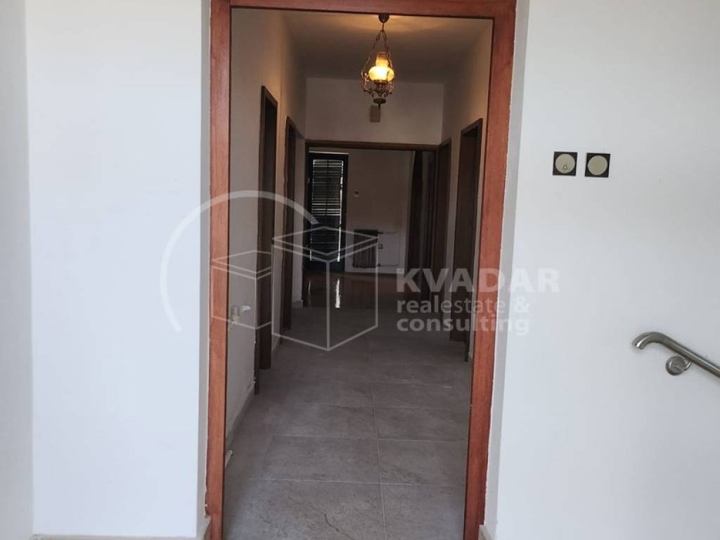 U stan se dolazi kroz zajedničko stubište, vrlo uredno i kvalitetno izvedeno. Kroz ulazni hodnik s desne strane nalazi se jedna spavaća soba, dok je s desne strane wc i ostava. U nastavku hodnika dolazi se do kuhinje,blagovaone i dnevnog boravka te , prostrane terase s koje se pruža predivan pogled na cijeli Kvarner i s obzirom na južnu orijentaciju stan prozračan je i prepun svjetla. Dvije spavaće sobe od kojih jedna ima balkon i na južnu terasu gledaju prema istoku. Kupaonica je prostrana i djelomično adaptirana. S obzirom da je stan samo održavan tijekom godina, nužno je promijeniti vanjsku stolariju.