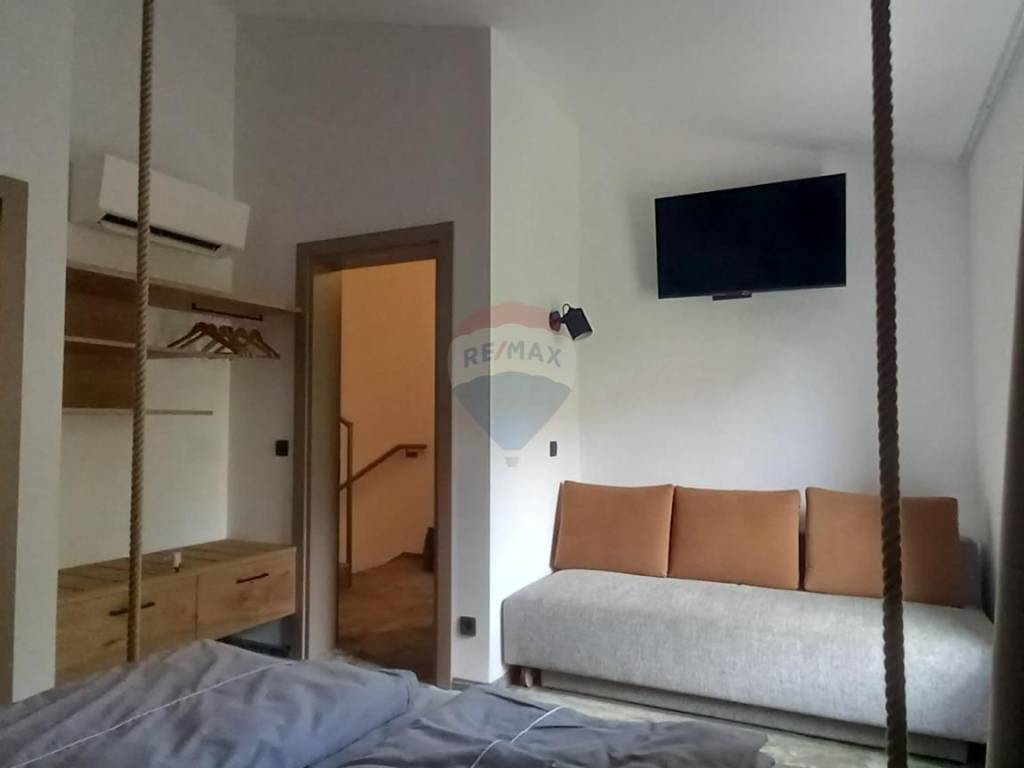 The arrangement was designed by a well-known Slovenian designer. All furniture, carpentry (Siberian larch) and equipment are of high quality.